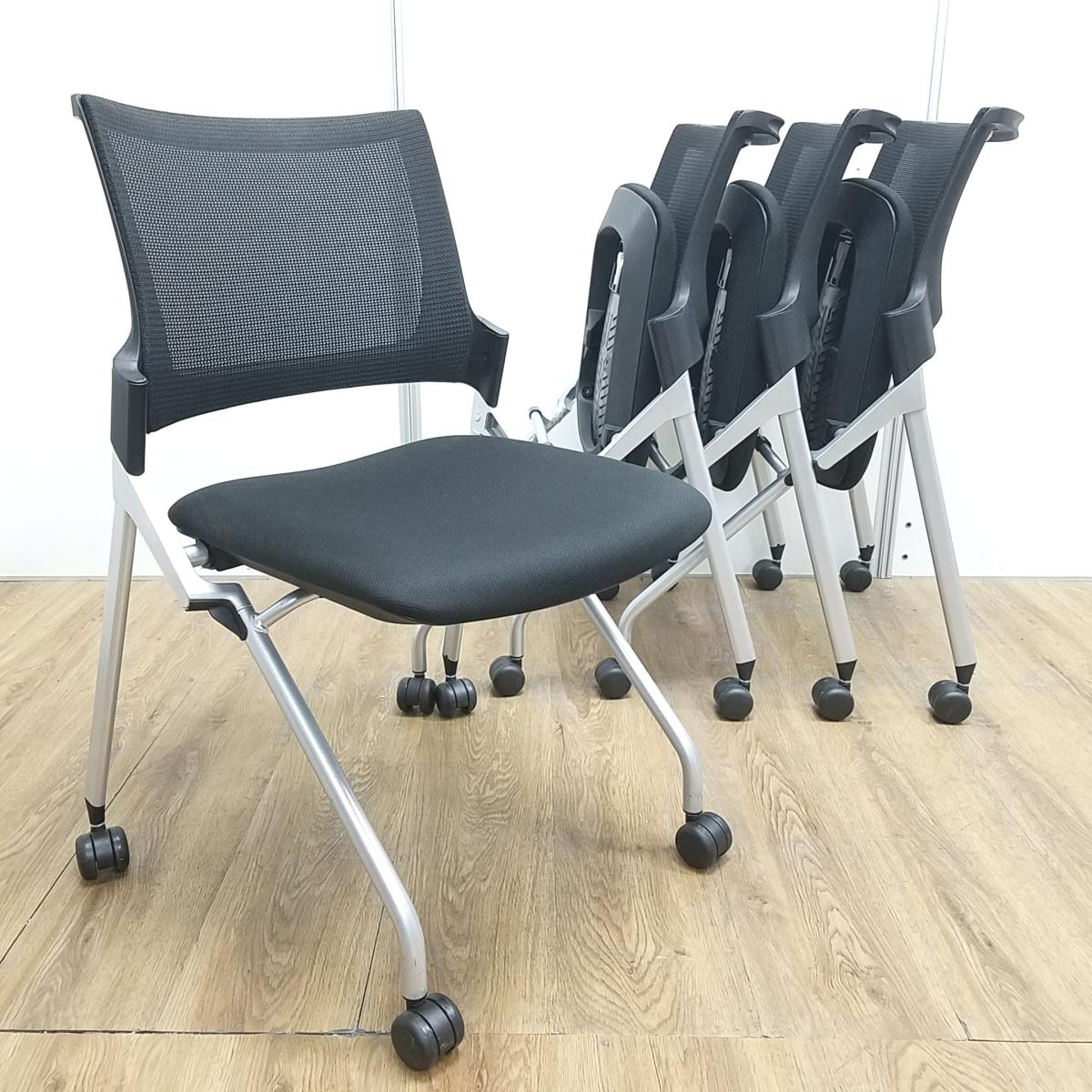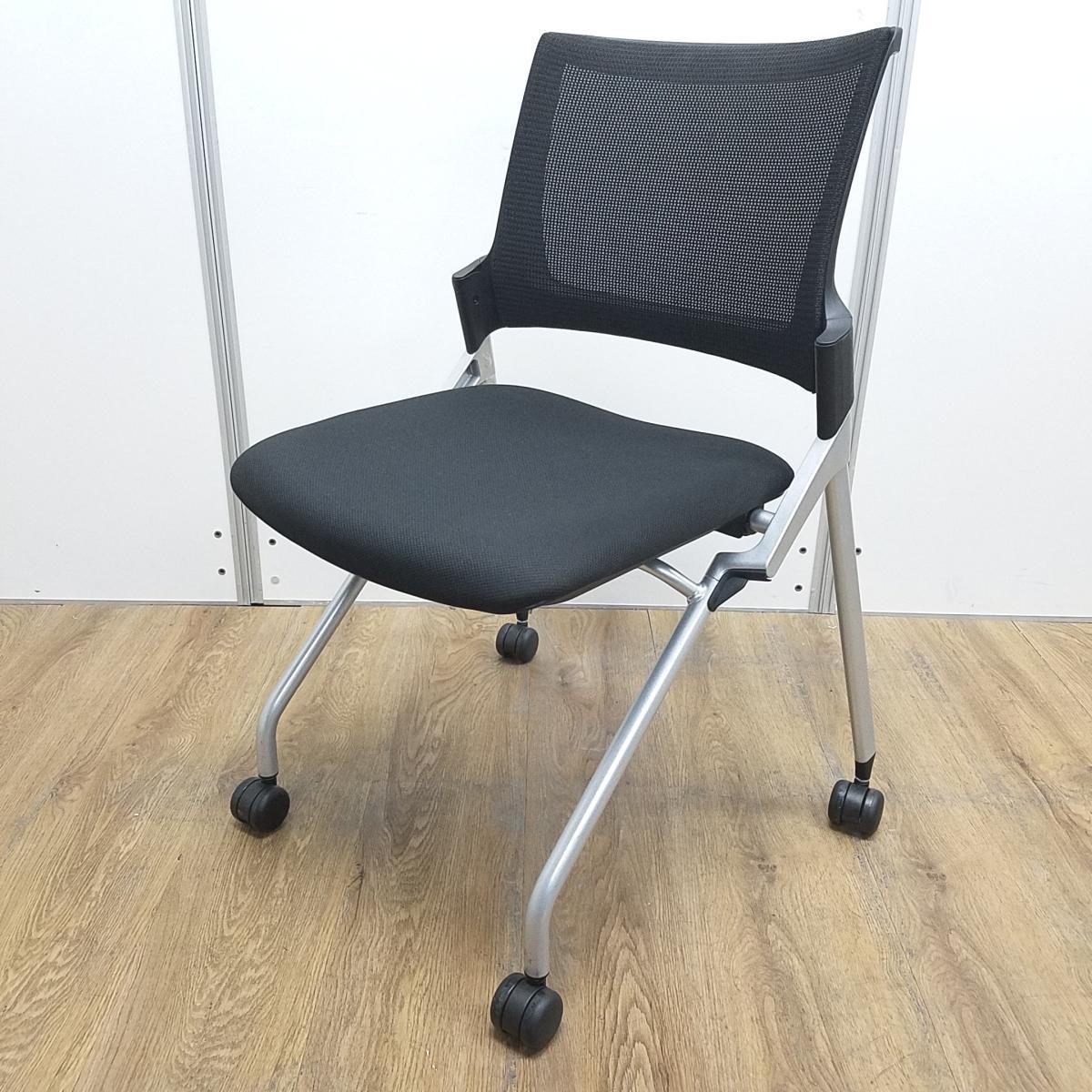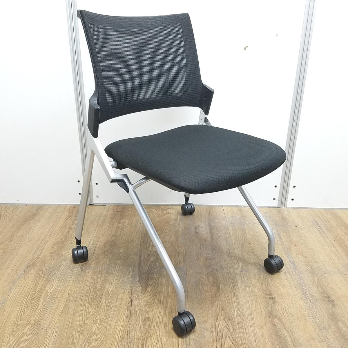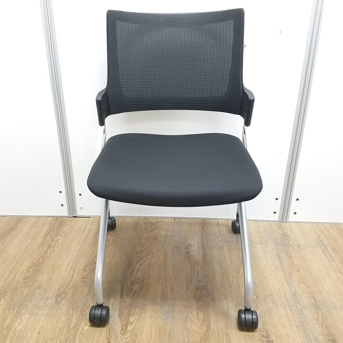 【4脚セット商品!!】イトーキ製 モノン ブラック 背面メッシュ キャスター付 重ねて収納可能! さまざまな場面で活躍するミーティングチェア! ネスティングチェア!!- 京都東寺店