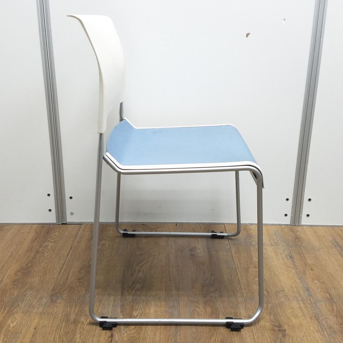 【ロット】【座面目立つ汚れ】イトーキ製 ルベック ライトブルー ホワイトシェル 会議や研修としてのご利用がオススメ! ミーティングチェア スタッキングチェア!!※保障対象外品になります。- 京都東寺店
