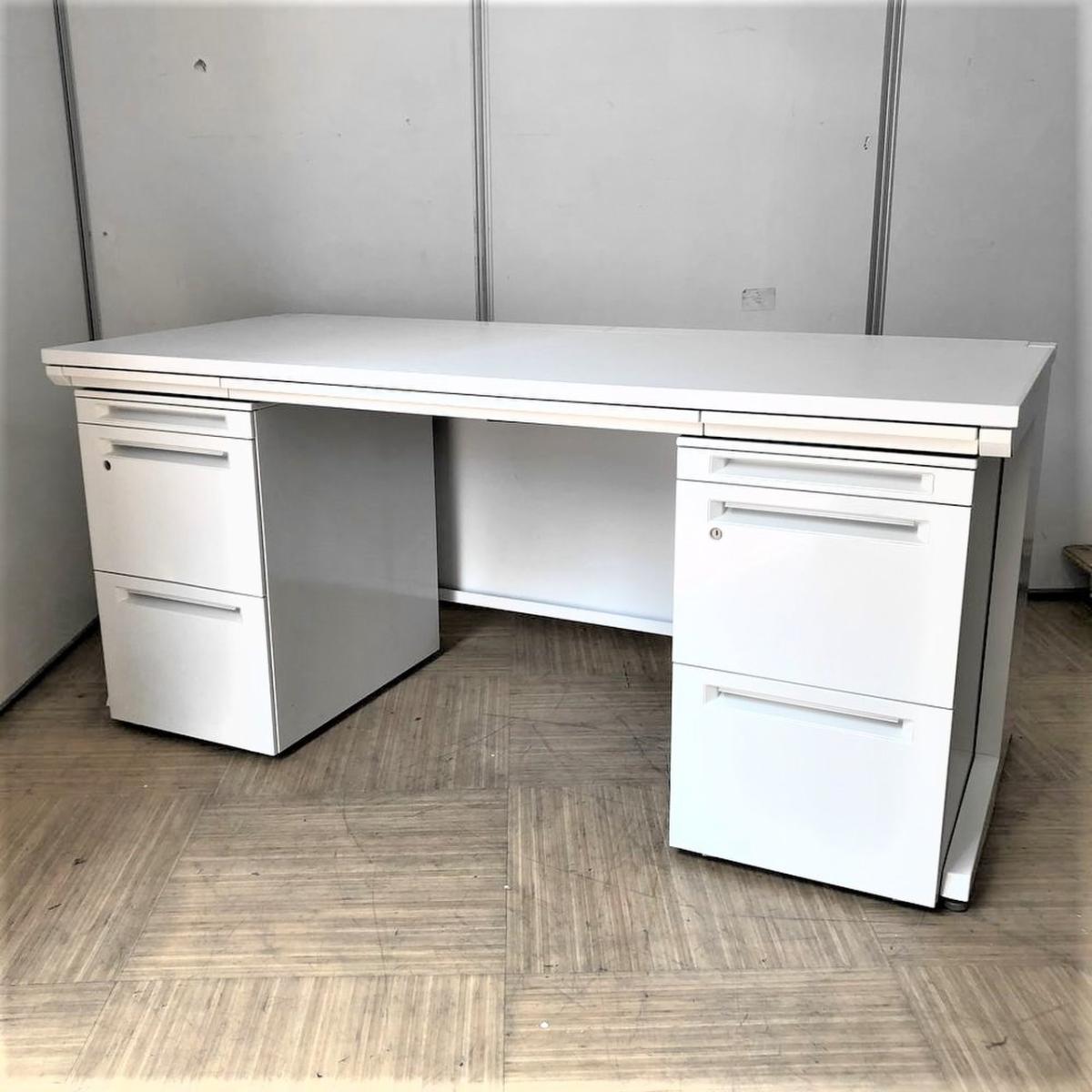 定番/大人気/希少 オカムラ(okamura)製 アドバンス 両袖机 幅1400㎜ ■ホワイト ■シリンダー錠