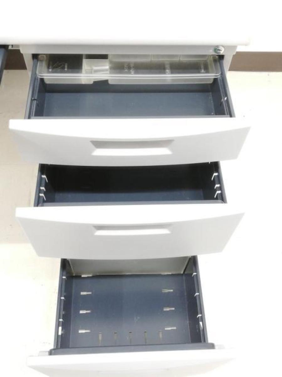 中段は書類やファイル等、下段はA4サイズ対応の引出で資料などの保管に便利です。