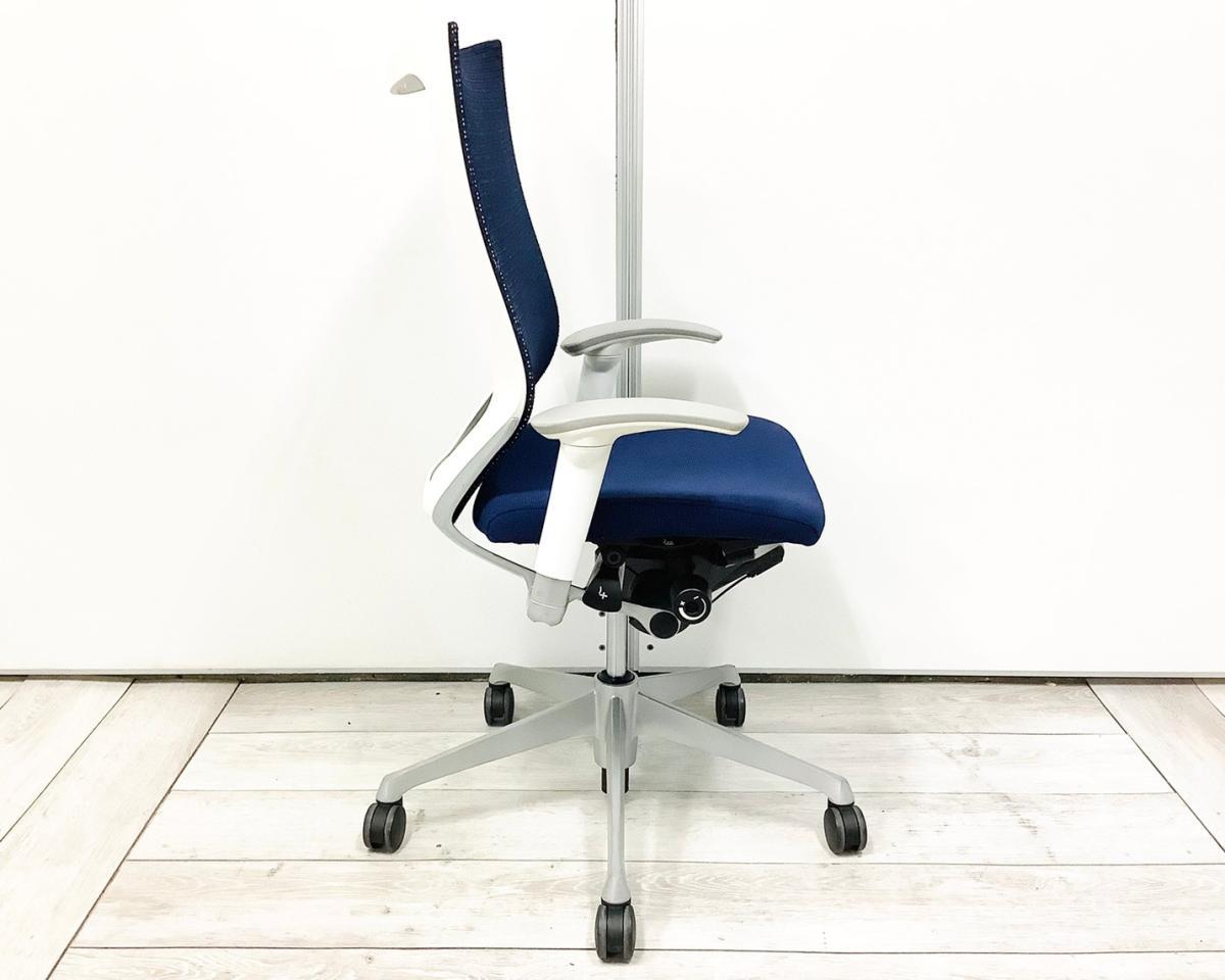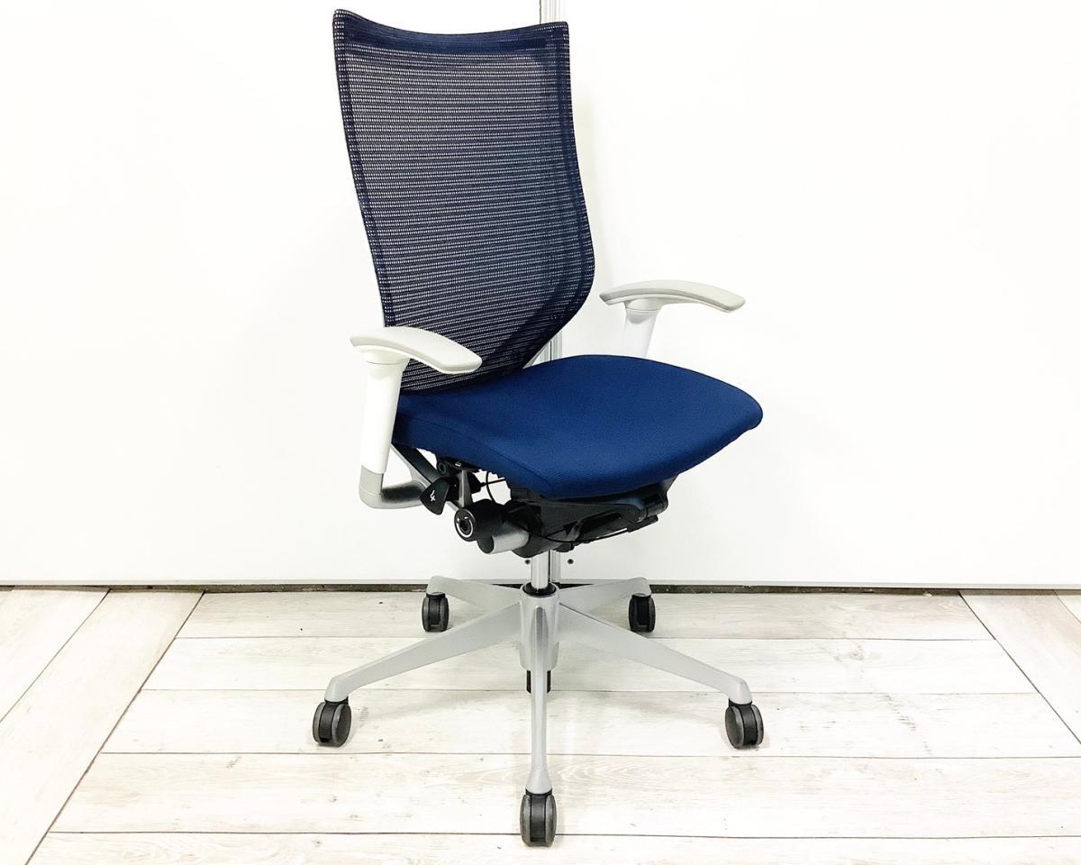 オカムラ製の大人気高級チェアシリーズが入荷!清潔感と爽快さを感じさせるブルー×ホワイト仕様! ■オカムラ/バロン/ダークブルー 可動肘付- 立川・八王子店