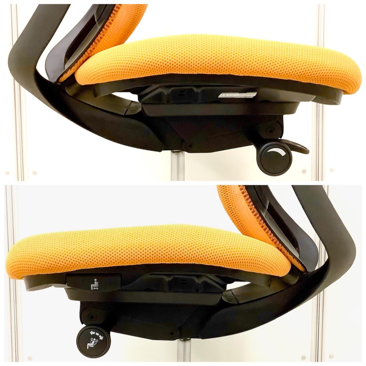 - 座面左下のダイヤルでリクライニングの固定と解除が行えます。 前傾ポジションをとることも可能です。