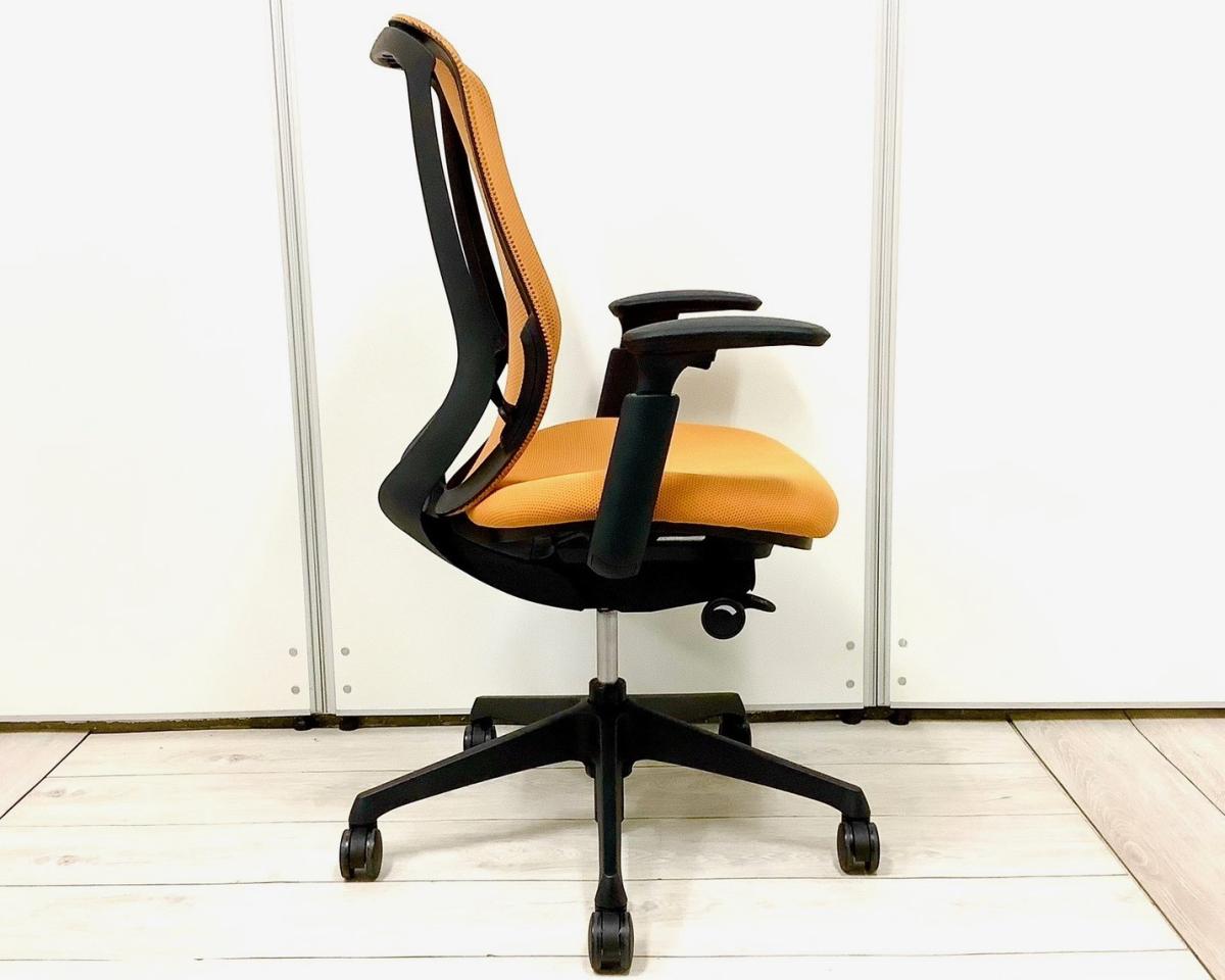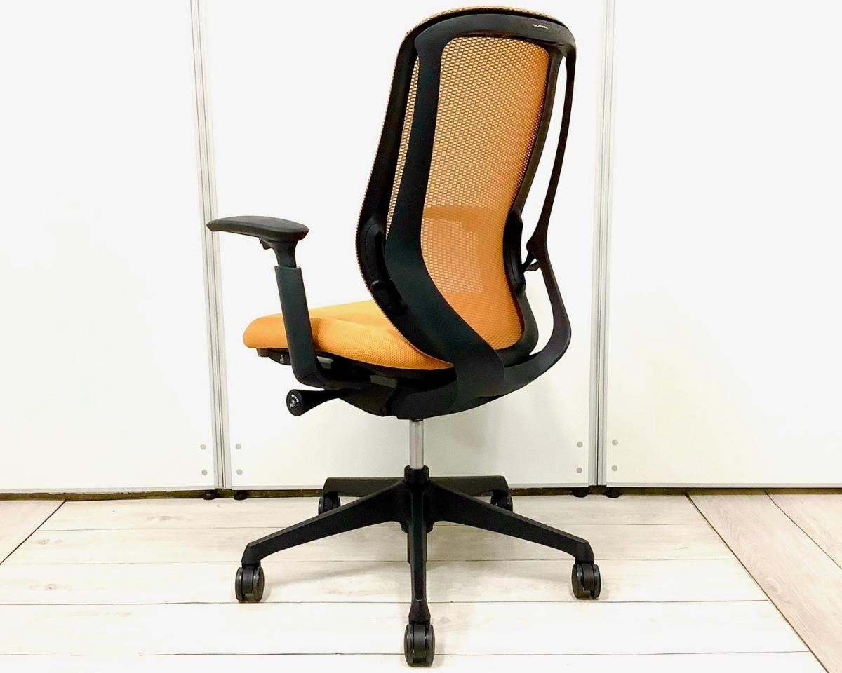 【在庫入替セール品!】【背のカーブを変えられる新感覚のオフィスシーティング!】■オカムラ シルフィーチェア 可動肘付 オレンジ ハンガー付 ホワイトフレーム ■新感覚のオフィスシーティング!【Okamrua Sylphy】