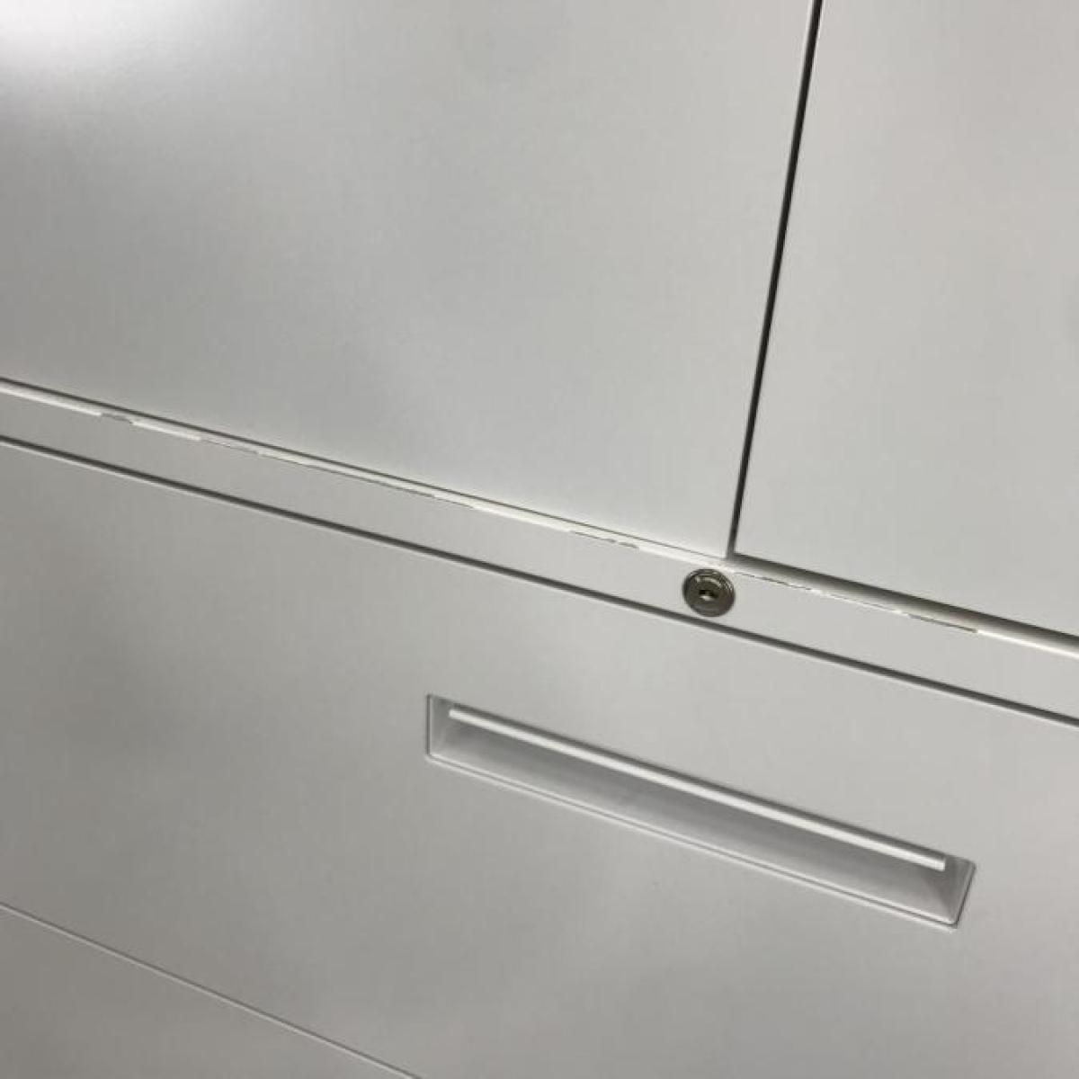 - 一部不具合ありそ引出の開閉不可、施錠不可、棚板無しといったの書庫の本来の効用を果たすための機能以外の一部が使用不可(例、扉、引出の開閉がしづらいなどがある。 )
