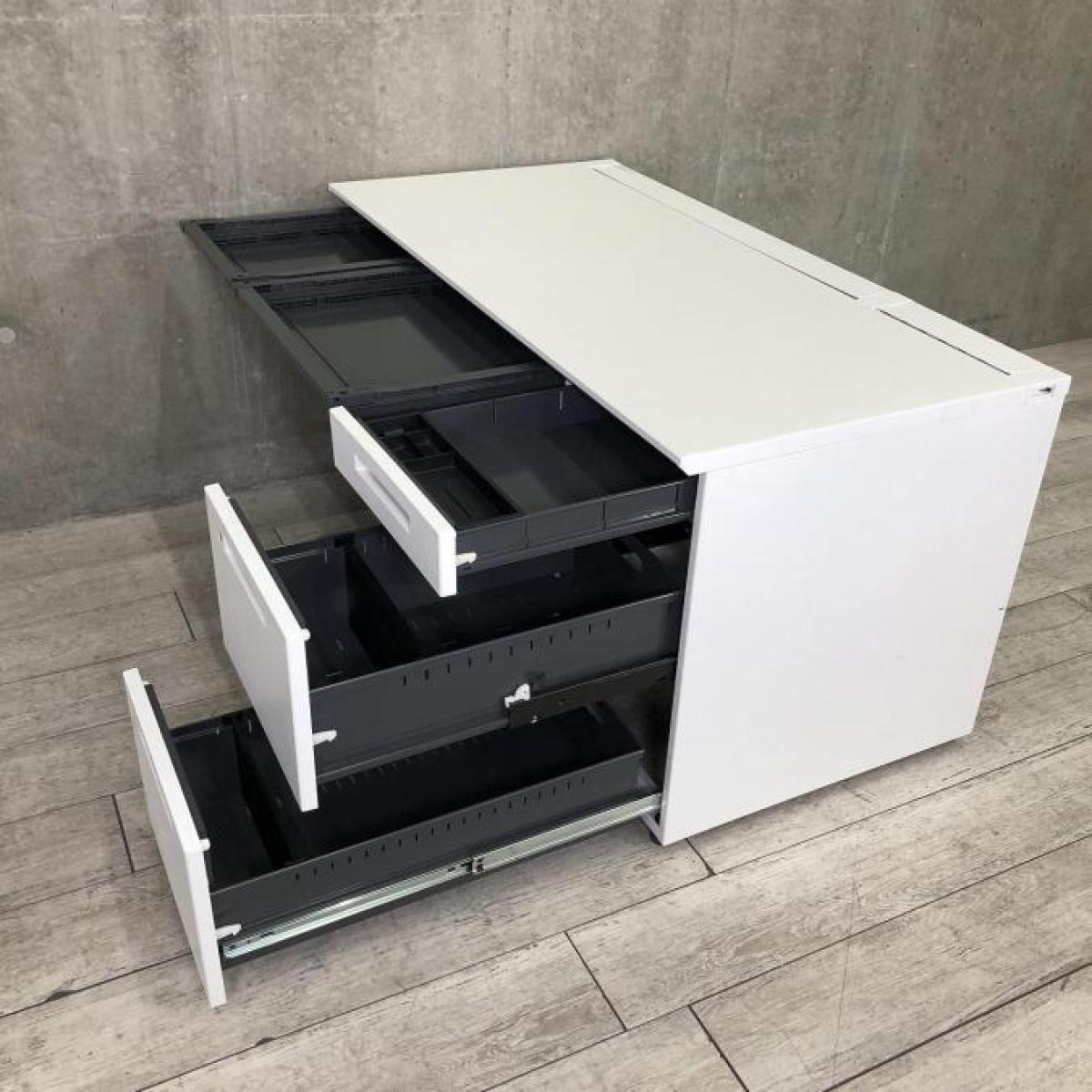 コクヨ/KOKUYO isシリーズ 疑似的な片袖机(平机+2段ワゴンのセット) ホワイト センター引出し付 W1400のゆったり使用できるサイズ感