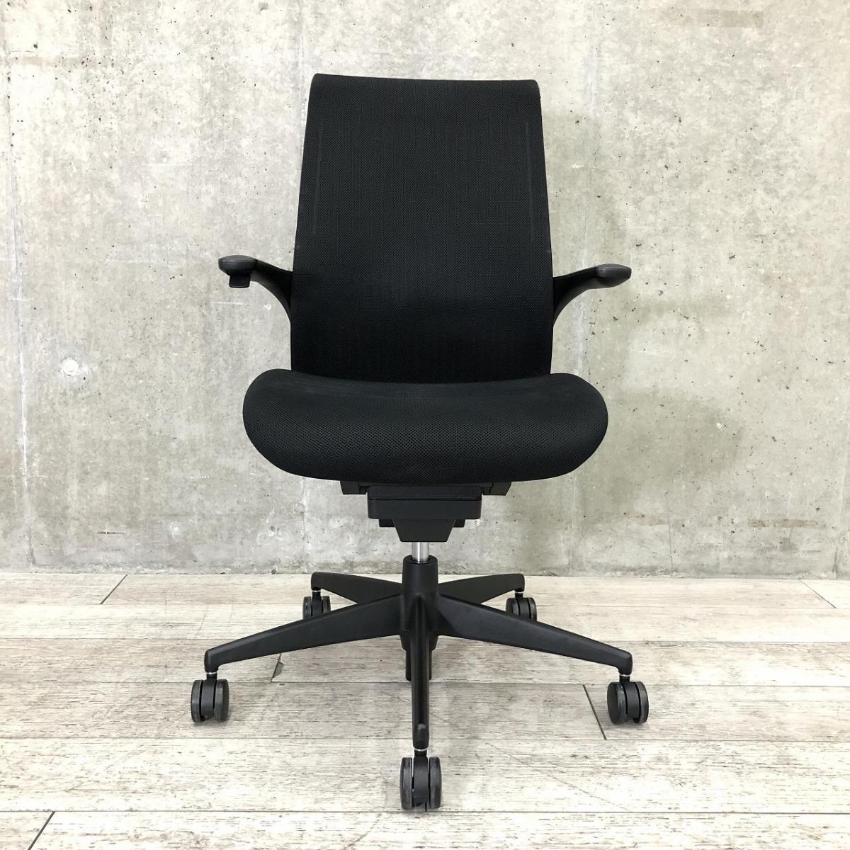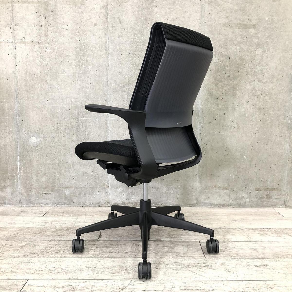 【ワンタッチ操作で快適な座り心地!】■コクヨ エムフォーチェア 肘付 ブラック ※座面擦れあり・背裏日焼けあり【KOKUYO M4】★