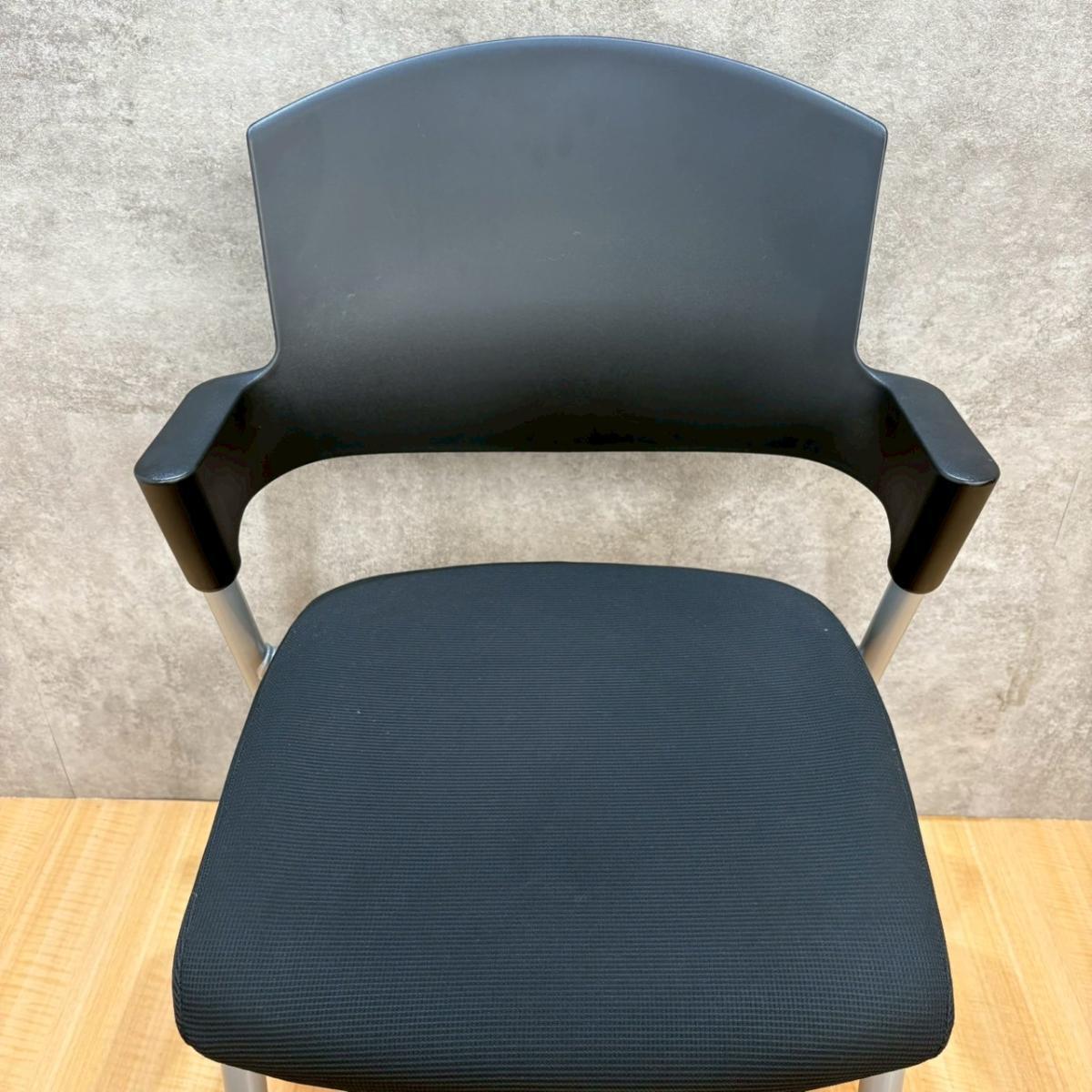 【6/16・8脚入荷予定!】【シンプルスマートなスタッキングチェア!分厚いクッションで長時間でも快適な座り心地!】■コクヨ製 プロッティ スタッキングチェア 肘付ミーティングチェア ■固定肘 ■キャスター付 ■ブラック ■背面樹脂 オフィスバスターズ梅田本店