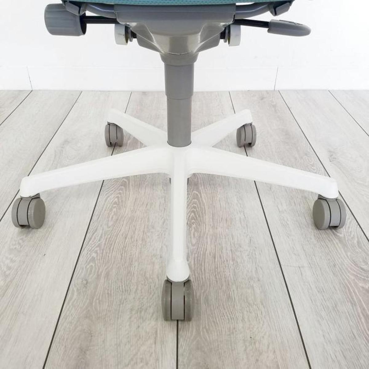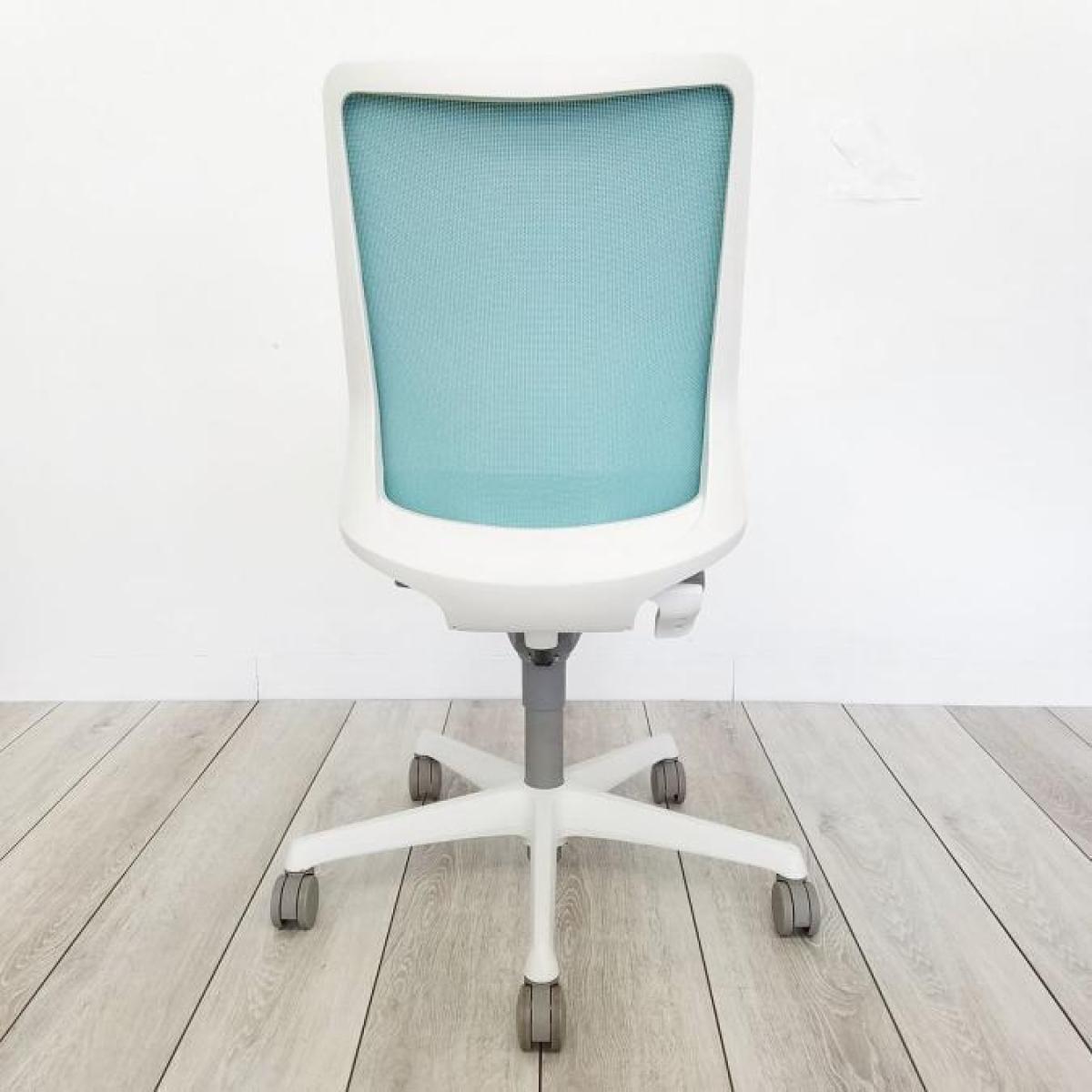 【腰まわりをしっかりホールド!長時間作業も快適フィット!】■オカムラ(okamura)製 フルーエントチェア(Fluent) ローバック 肘無し ■背面メッシュ ■セージブルー×ホワイトシェル〈岐阜・愛知・三重・静岡・福井〉
