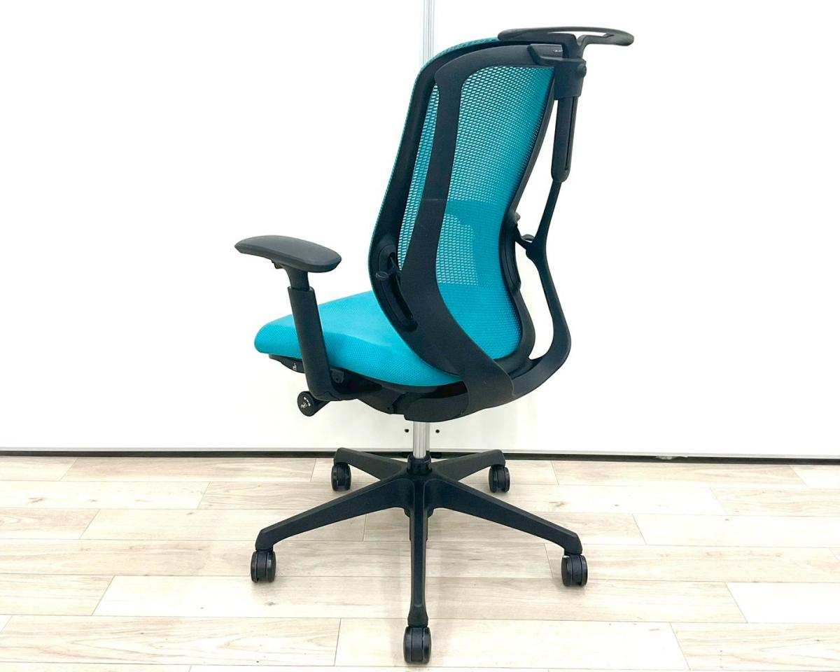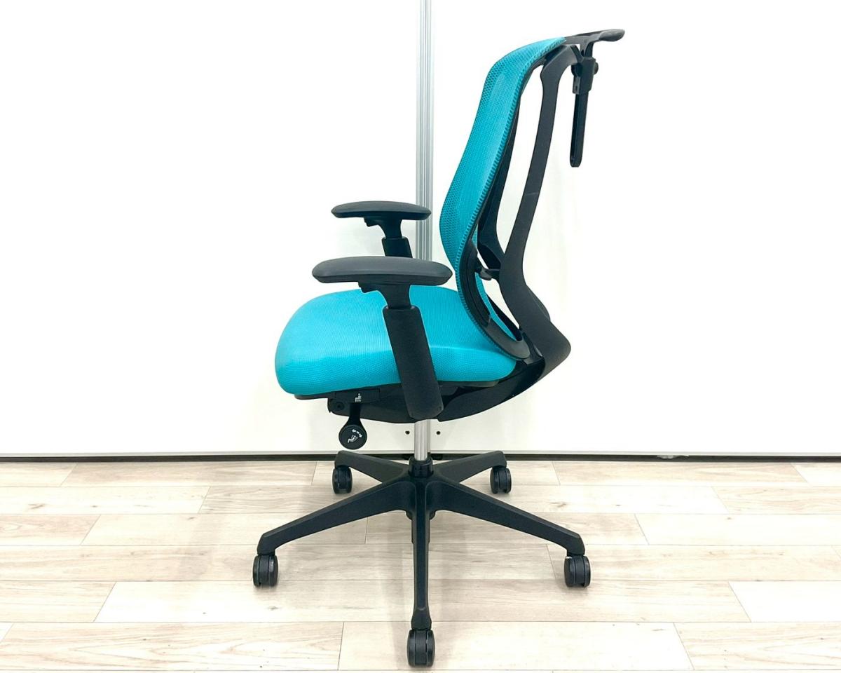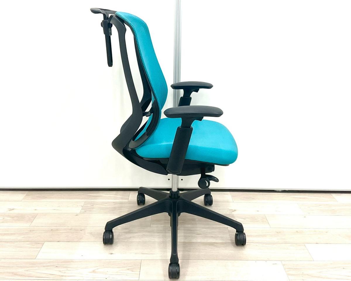 《現物写真だから安心!》オカムラ製の人気オフィスチェア【シルフィーメッシュ/可動肘/ヘッドレスト付き/ブルーグリーン】が先着1名様ご案内可能です!
