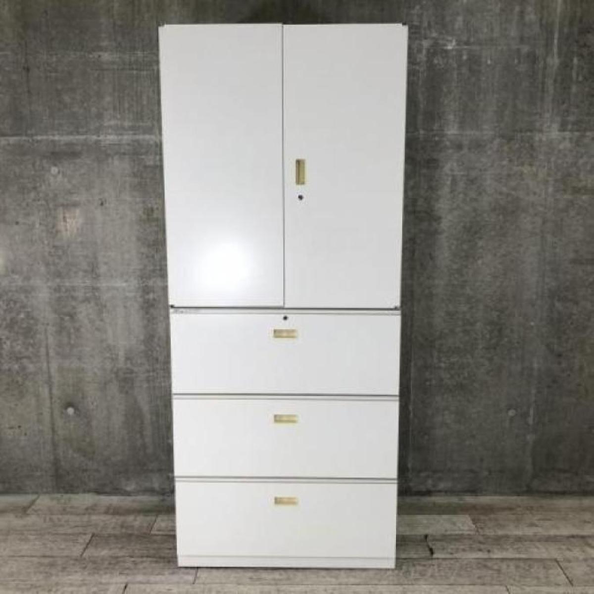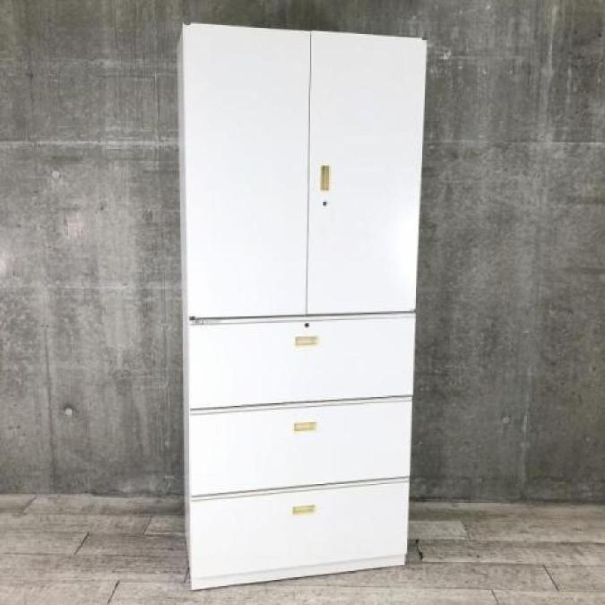 【在庫お探しいたします!/予約依頼商品】イトーキ製のハイキャビネット(両開き書庫+3段ラテラル書庫)【シンラインシリーズ/ホワイト色】 *良品を格安で!「オフィスバスターズ福岡南店」は、福岡を拠点として、全国へ中古オフィス用品・オフィス家具を提供しております