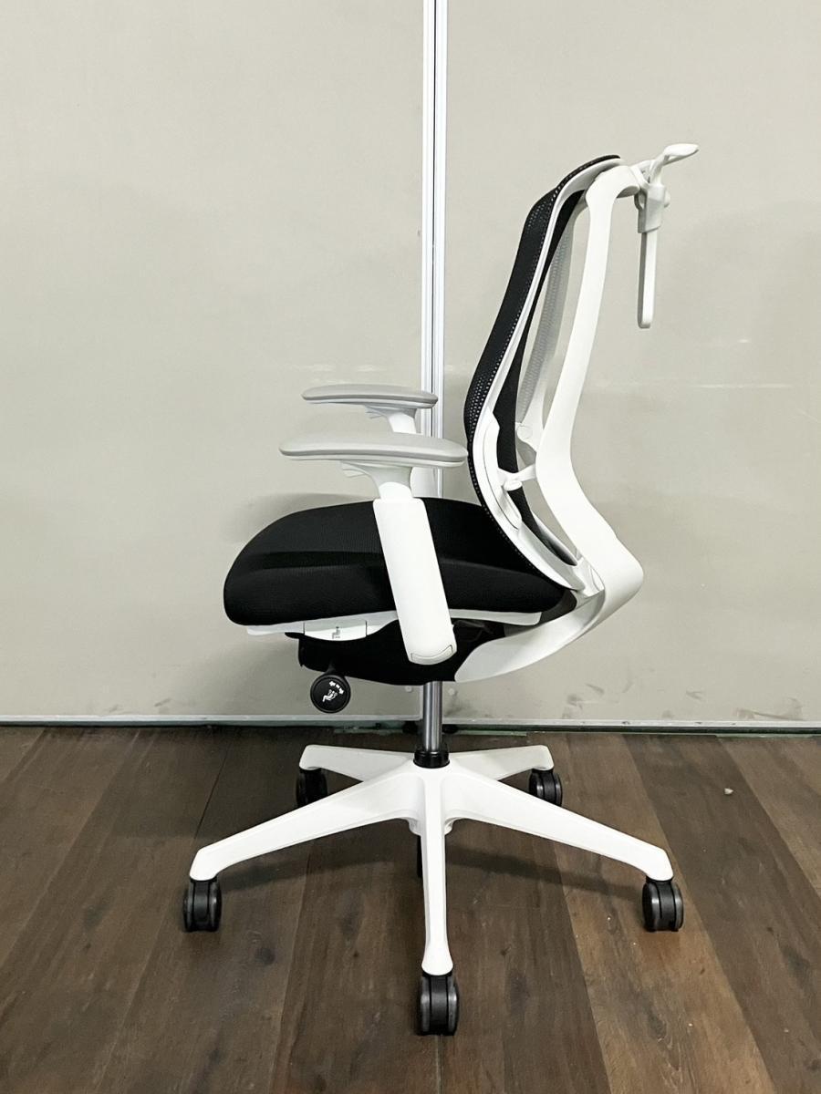 【三次元曲面が身体にフィット!前傾チルト機能付き大人気メッシュチェア!】■オカムラ(okamura)製 シルフィーチェア(Sylphy) 肘付きハイバック ■背面メッシュ ■可動肘 ■ブラック×ホワイトシェル ■コートハンガー付き- 名古屋本店