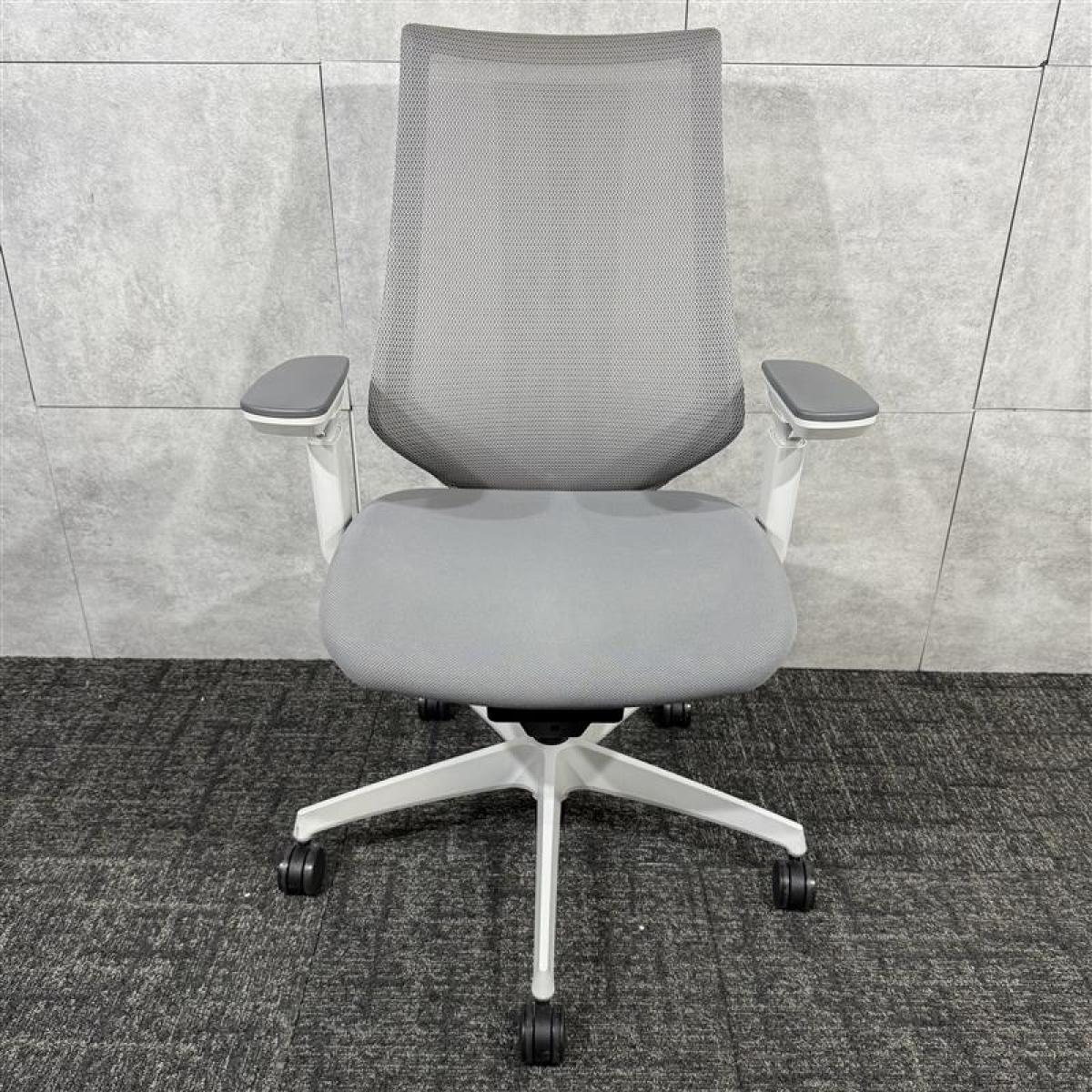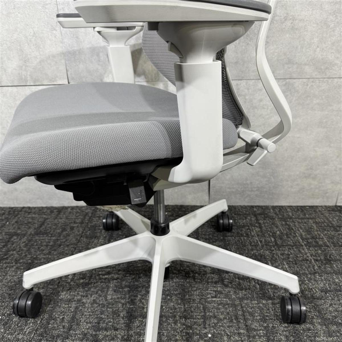 【美しいデザインかつ簡易操作で自分に合った姿勢をサポート!】コクヨ製 デュオラチェア 可動肘肘付 ハイバック 背面メッシュ グレー ホワイトフレーム 福岡 九州最大級《オフィスバスターズ福岡博多店は、福岡を拠点として、日本全国へ中古オフィス用品・オフィス家具を提供しております》- 福岡博多店