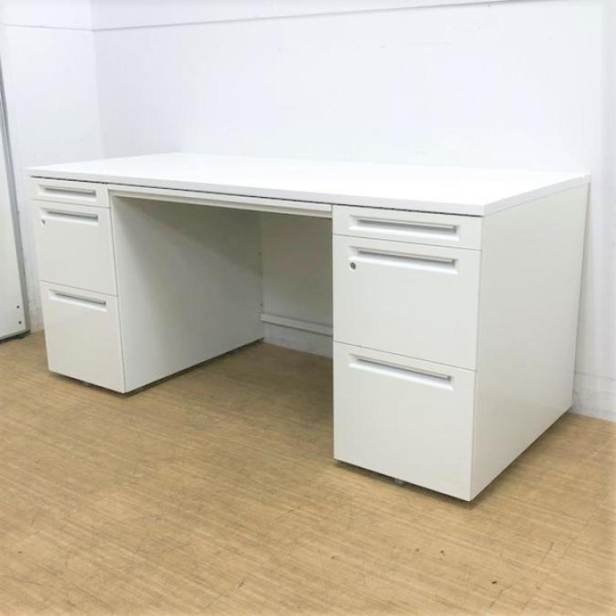 【広々としたワークスペースで作業効率アップ!】■オカムラ アドバンスシリーズ W1600×D600×H720mm ホワイト ■豊富な収納スペース!オフィス書類をスッキリ整理!
