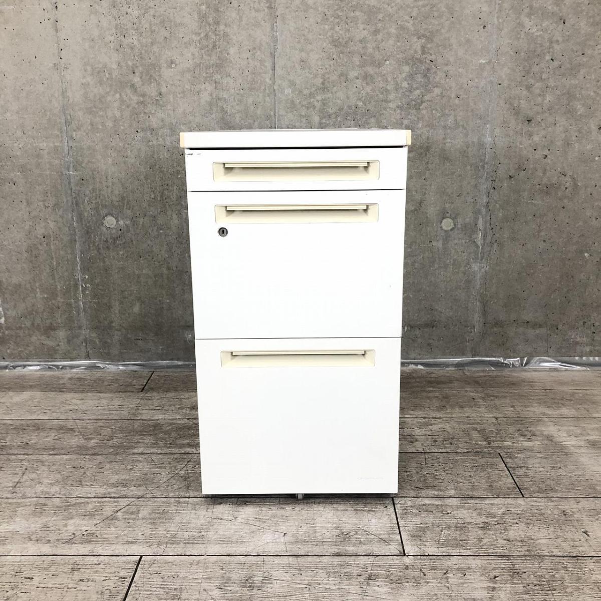 【4台限定!!】オカムラのロングセラー商品の「アドバンス」シリーズの脇机!中古 脇机 袖 サブデスク オフィス ホワイト 引出し 3段 外部倉庫在庫