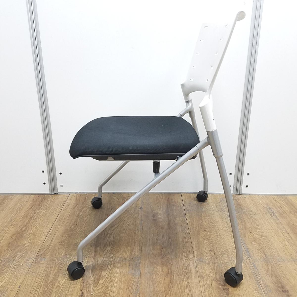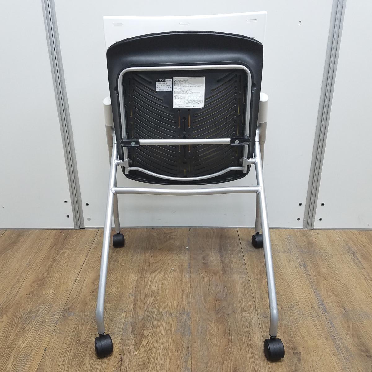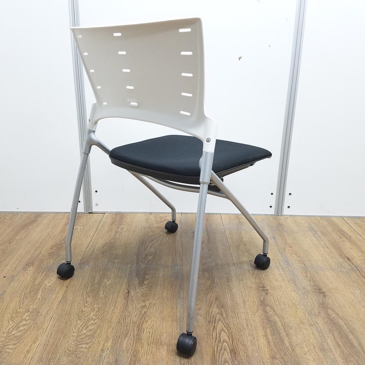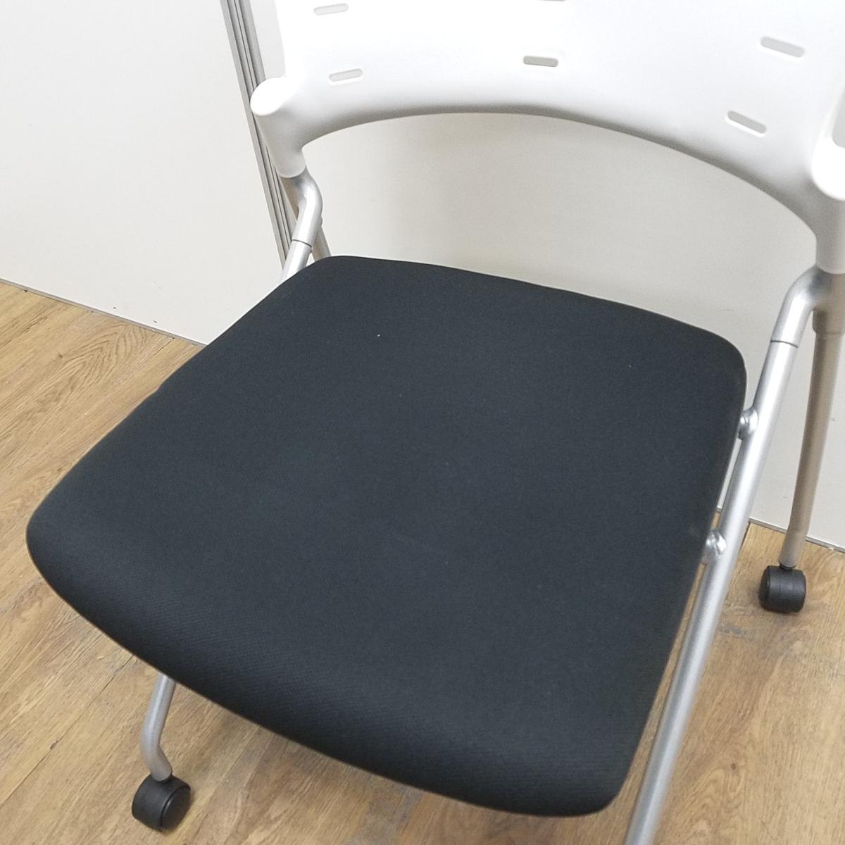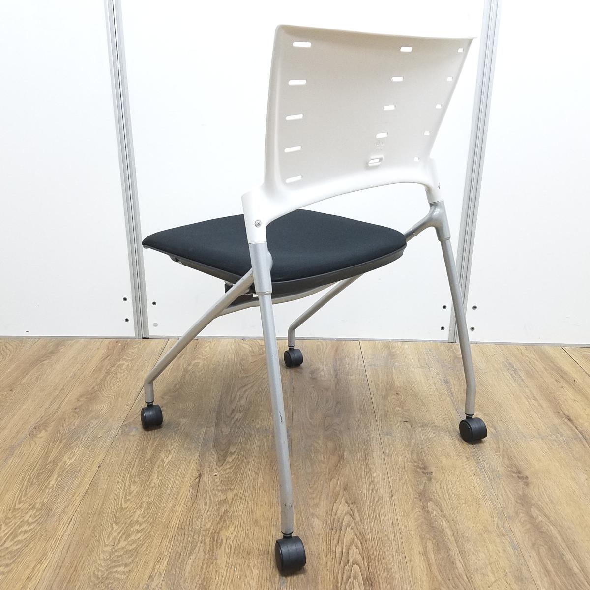 【T11】【商品入替のため、店頭在庫限り】イトーキ製 マノス ホワイト×ブラックのツートンカラー キャスター付 平衡収納 ネスティングチェア!!- 京都東寺店