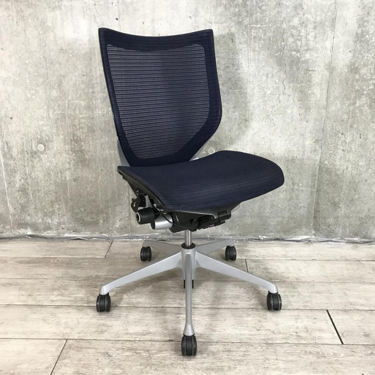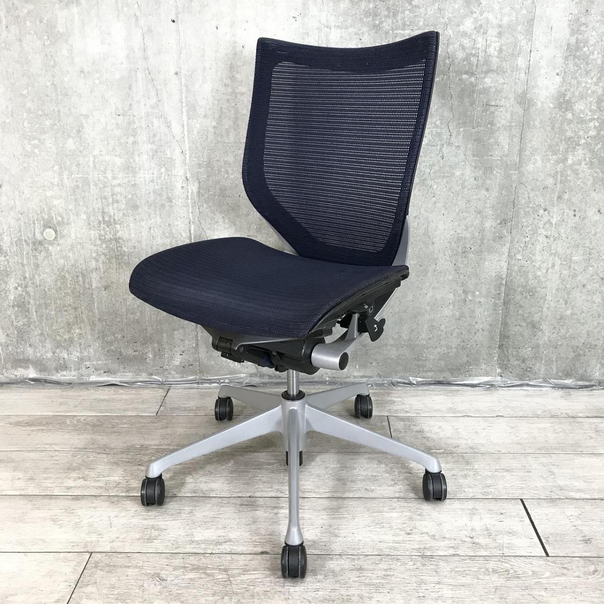 【在庫入替セール品】希少/オススメ/大人気 オカムラ製 バロンチェア(Baron) ハイバック 肘無し ■背/座面メッシュ ■ミディアムブルー