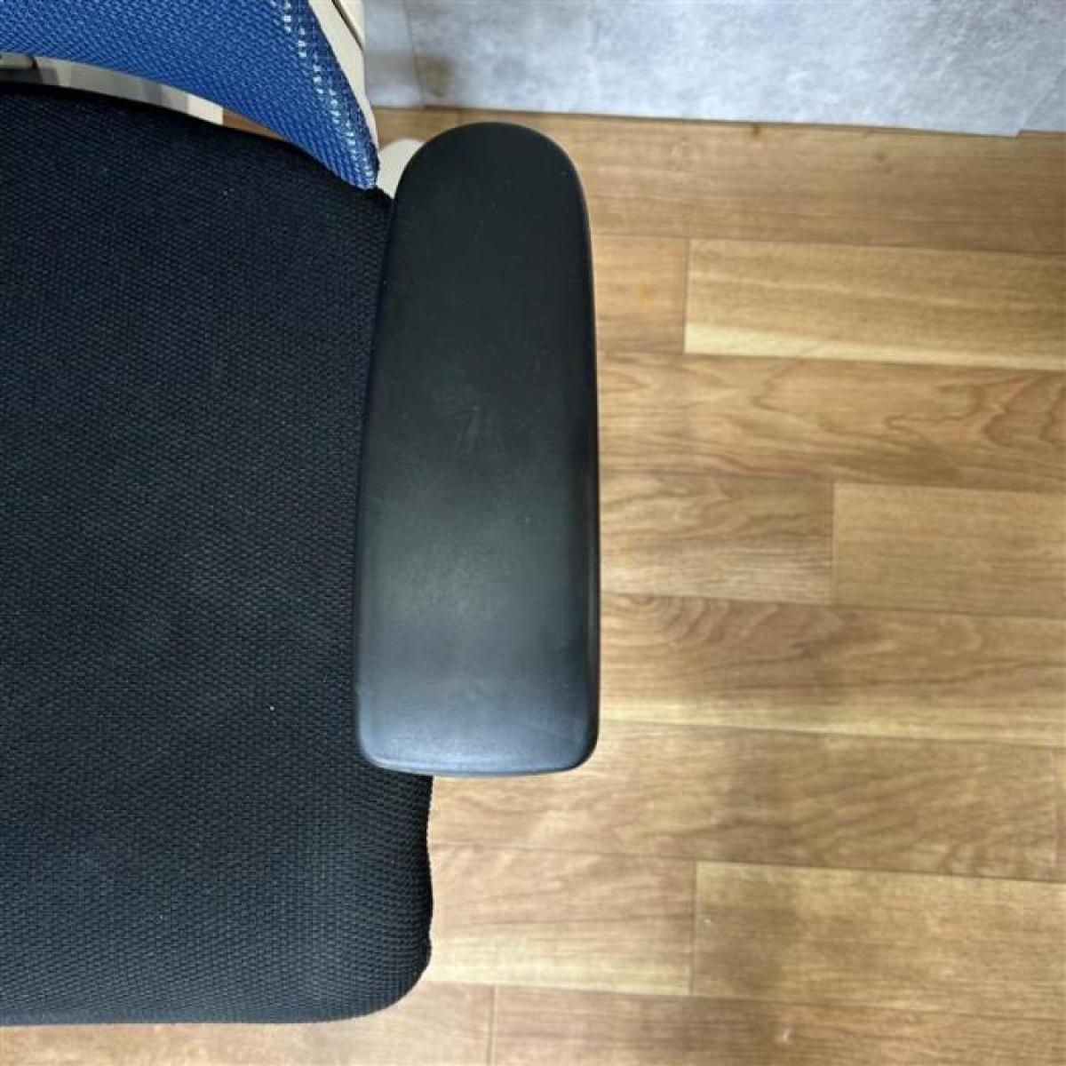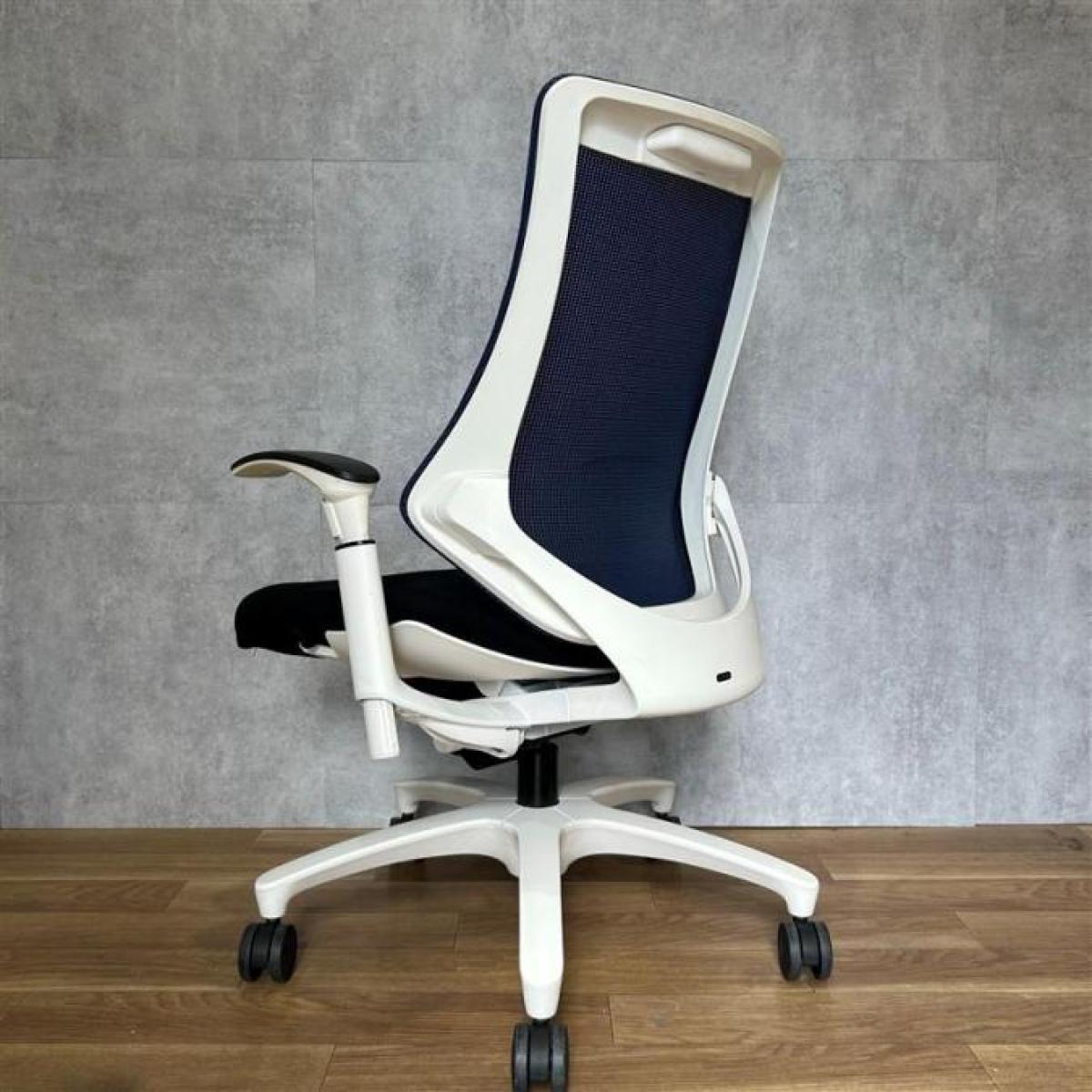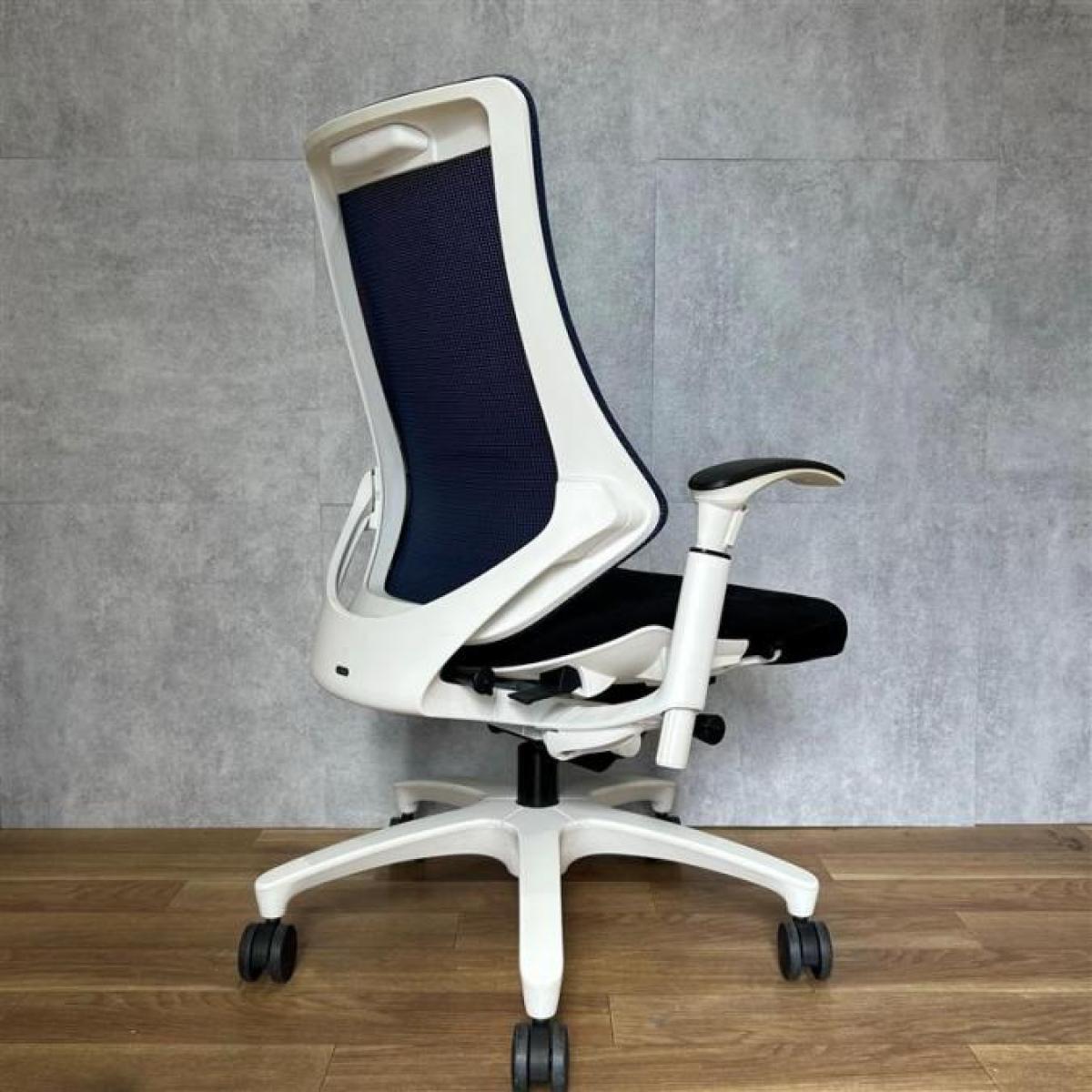 【定価約13万円】【姿勢の変化にフレキシブルに対応!スタイリッシュなデザインのメッシュチェア!】■イトーキ(ITOKI) エフチェア(f) 肘付き ハイバック 背面メッシュ ■可動肘 ■ハンガー付き ■ストロングブルー ×ホワイトシェル ※キズ、日焼けあり