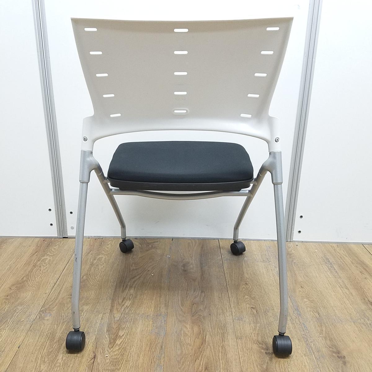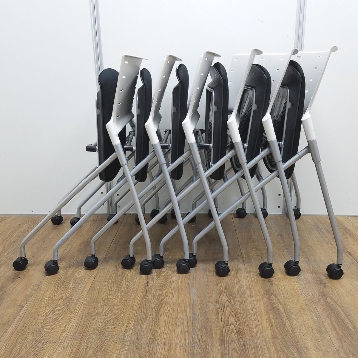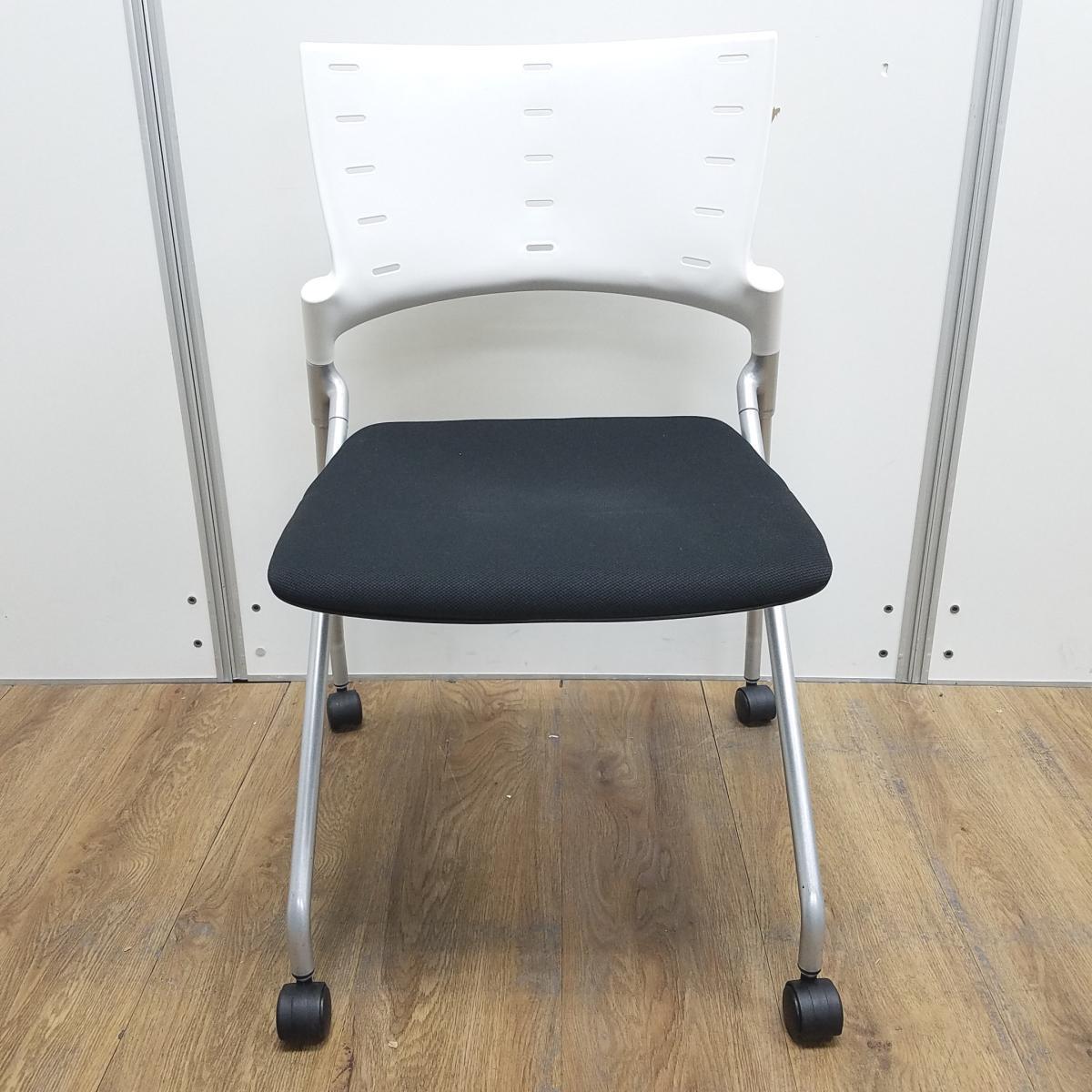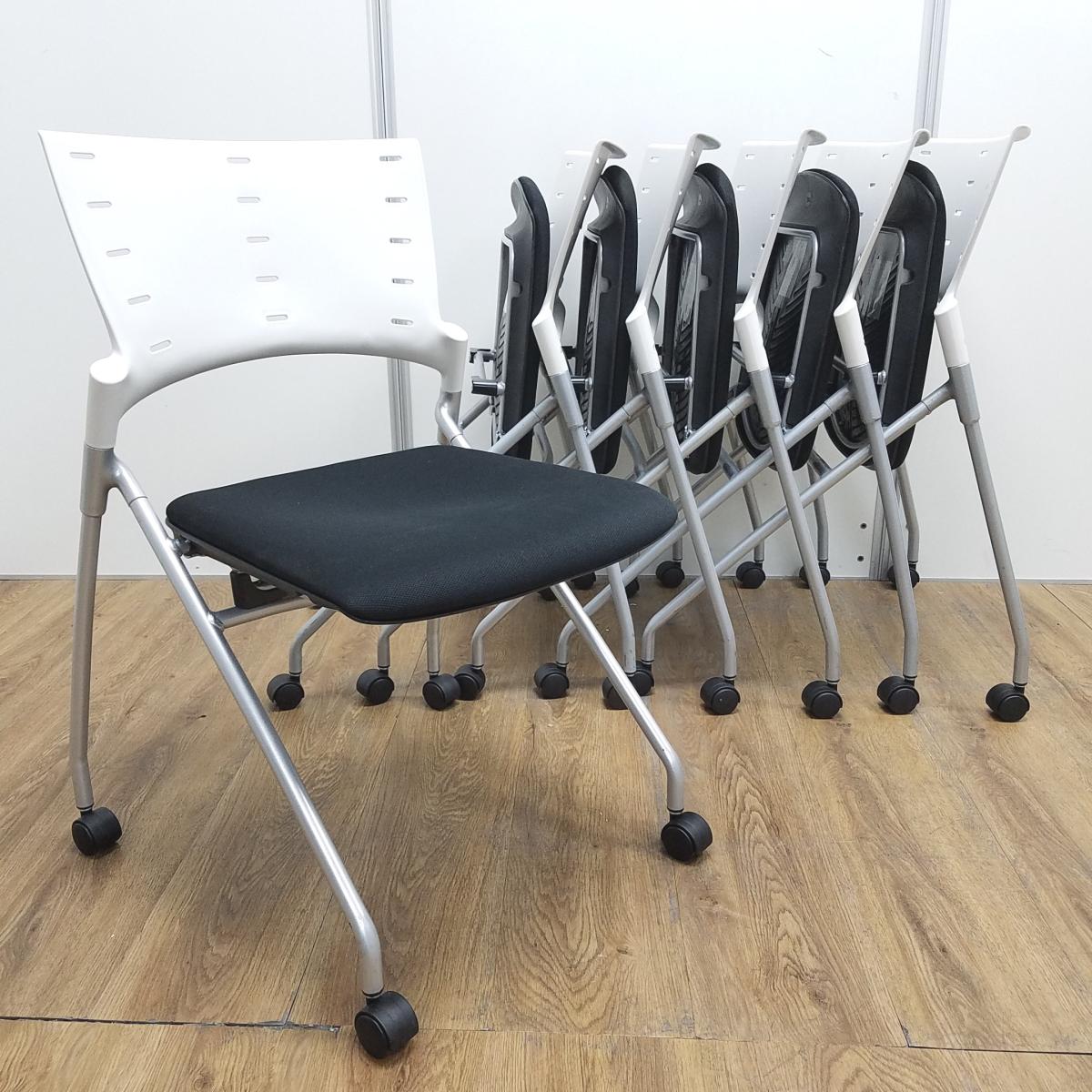 【6脚セット!!】イトーキ製 マノス ホワイト×ブラックのツートンカラー キャスター付 平衡収納 ネスティングチェア!!- 京都東寺店