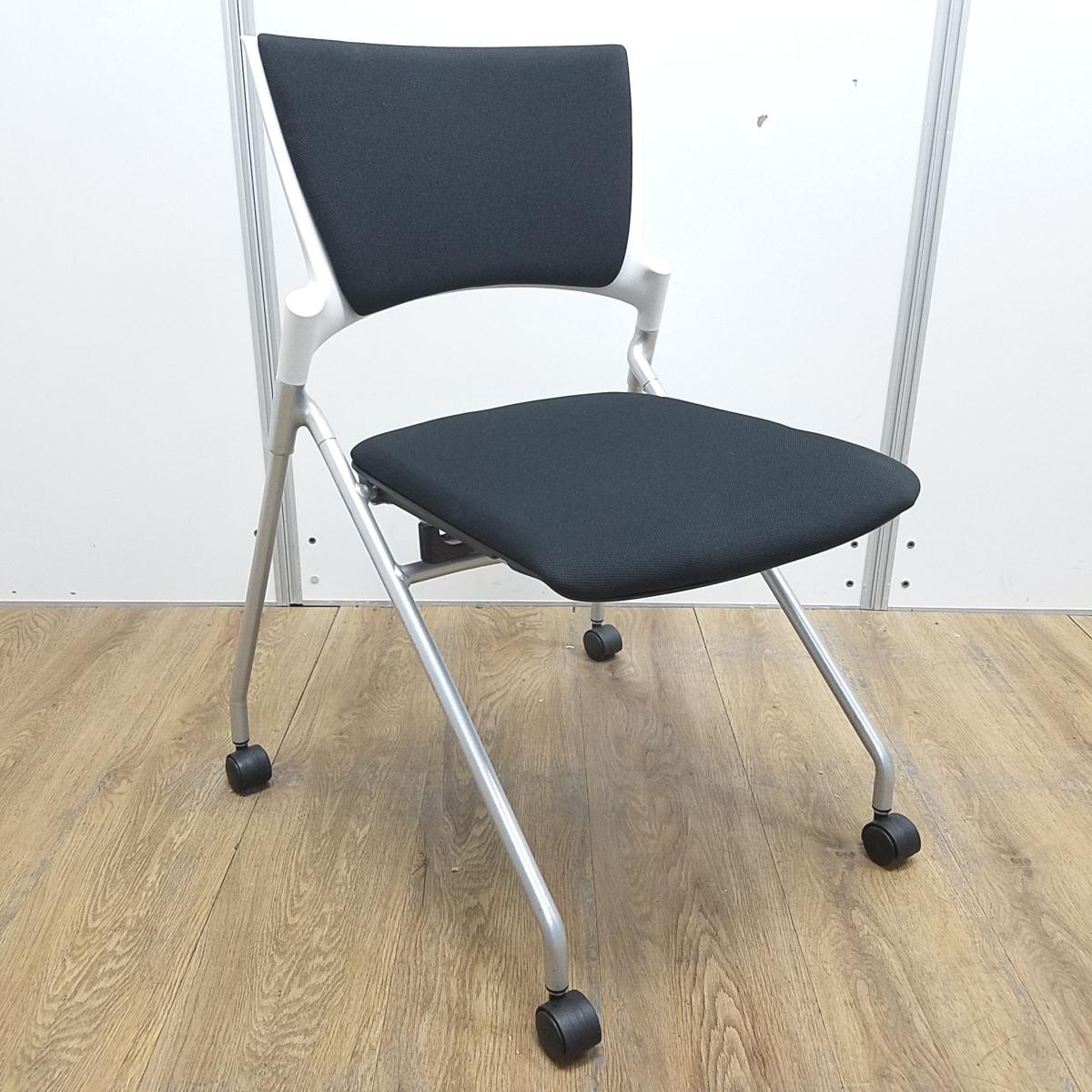 イトーキ製 マノス ブラック 背パッド キャスター付 セミナーや会議用にオススメチェア 平行ネスティングで省スペース化! ネスティングチェア!!- 京都東寺店