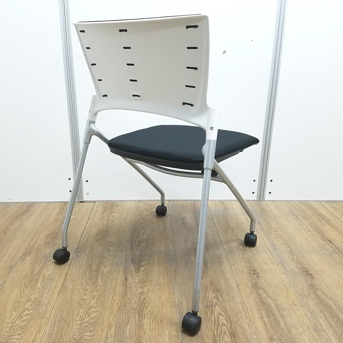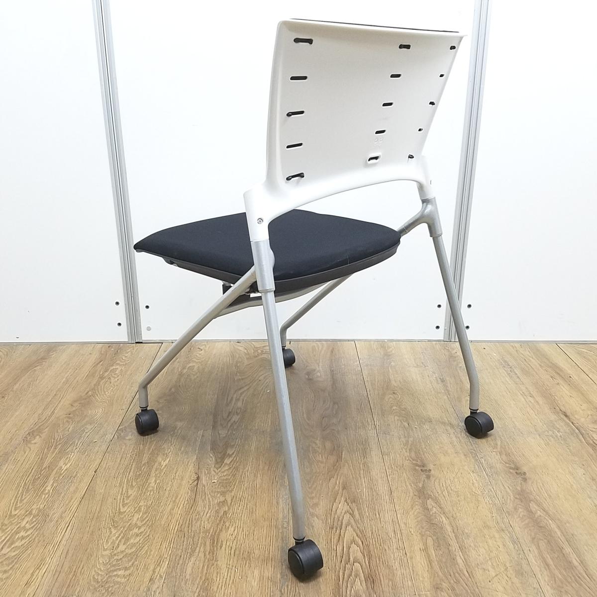 【関西倉庫在庫品】【平行に重ねて省スペース!使い勝手抜群のミーティングチェア!】■イトーキ マノスシリーズ ネスティングチェア 座ブラック 背ホワイト キャスター付【ITOKI Manos】【W】