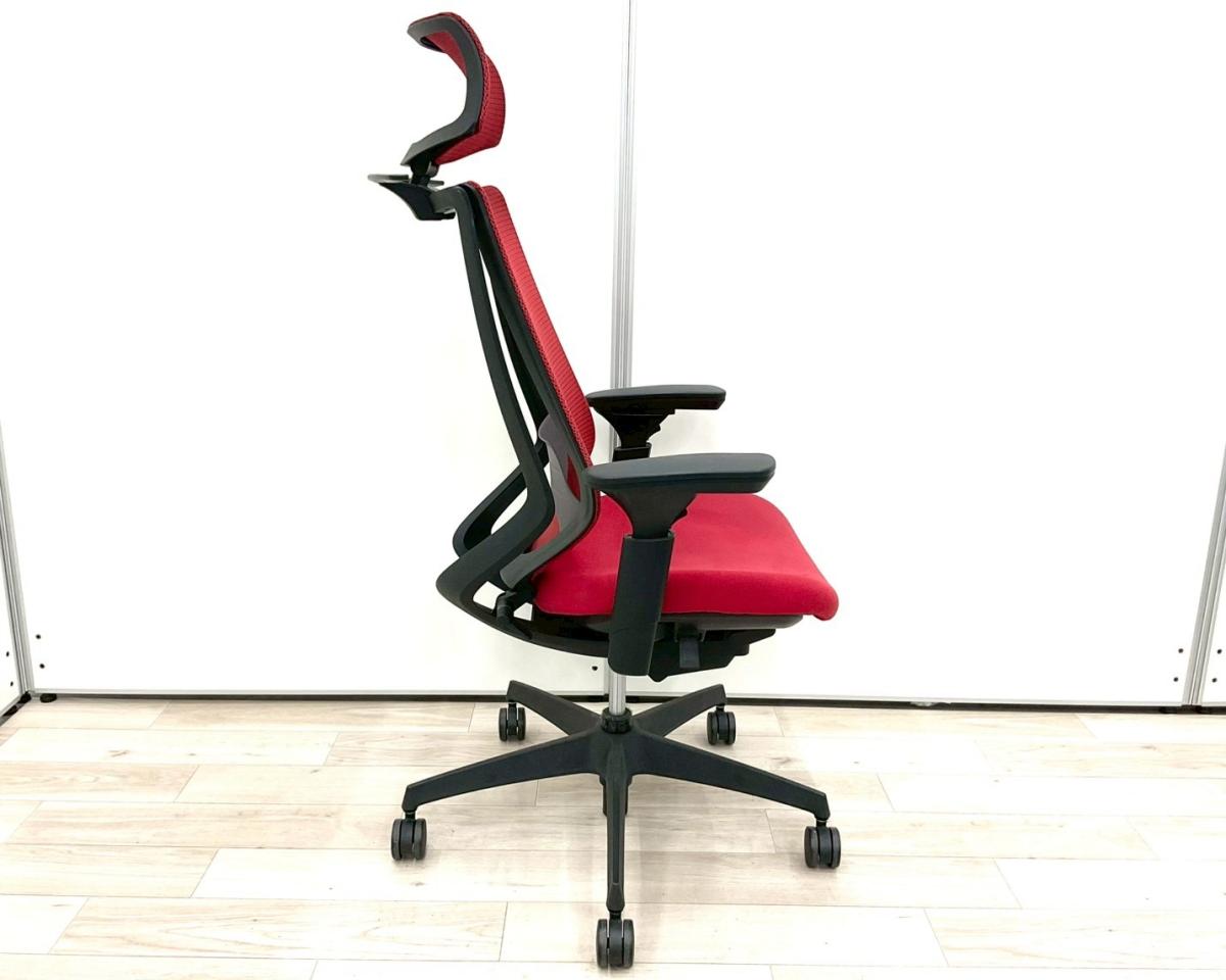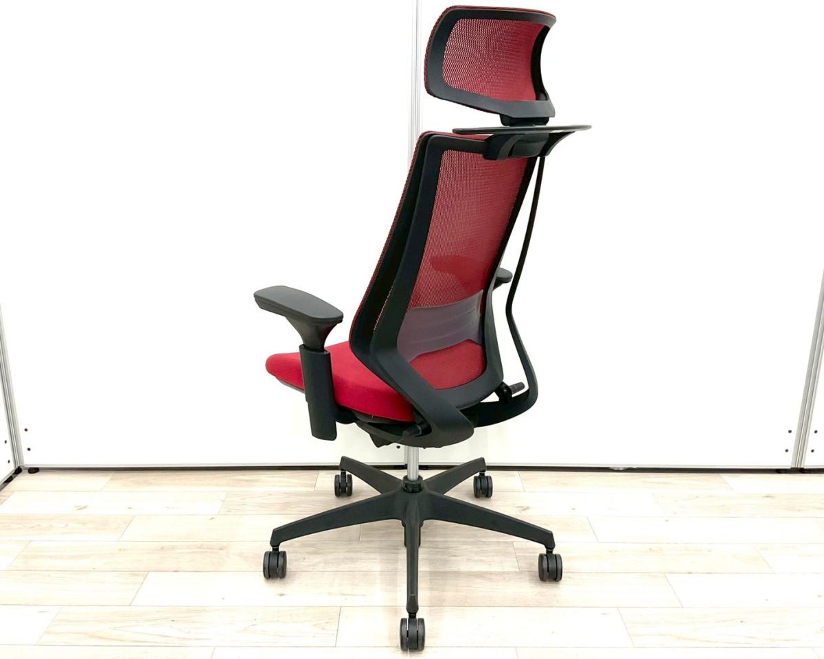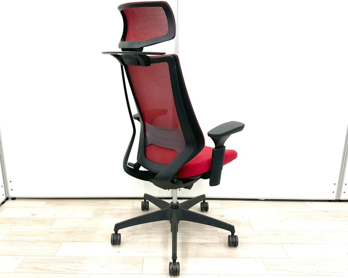 【定価約14万円】【ヘッドレスト付きモデルの入荷です!!】■コクヨ製 デュオラ 肘付きハイバックチェア ■可動肘 ■ヘッドレスト付き ■背座レッド×ブラックフレーム【弊社使用欄:A01034196】サーキュラーバリューCO2削減量の算出について