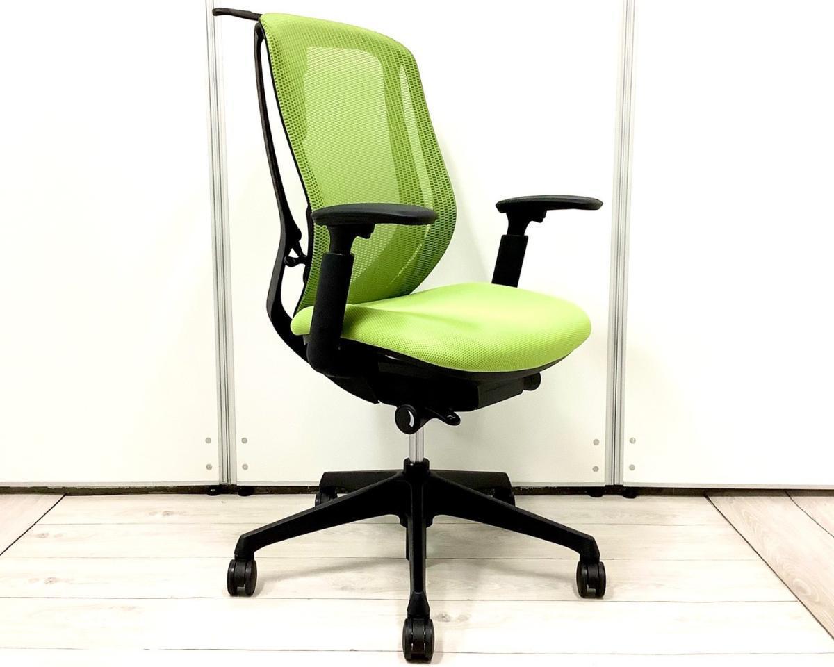 【前傾チルト機能付き!オカムラ製品で最も人気を集める高機能メッシュチェア!】■オカムラ(okamura)製 シルフィ(Sylphy)チェア ハイバック 肘付き ■可動肘 ■ライムグリーン × ホワイトシェル【状態良好品!】