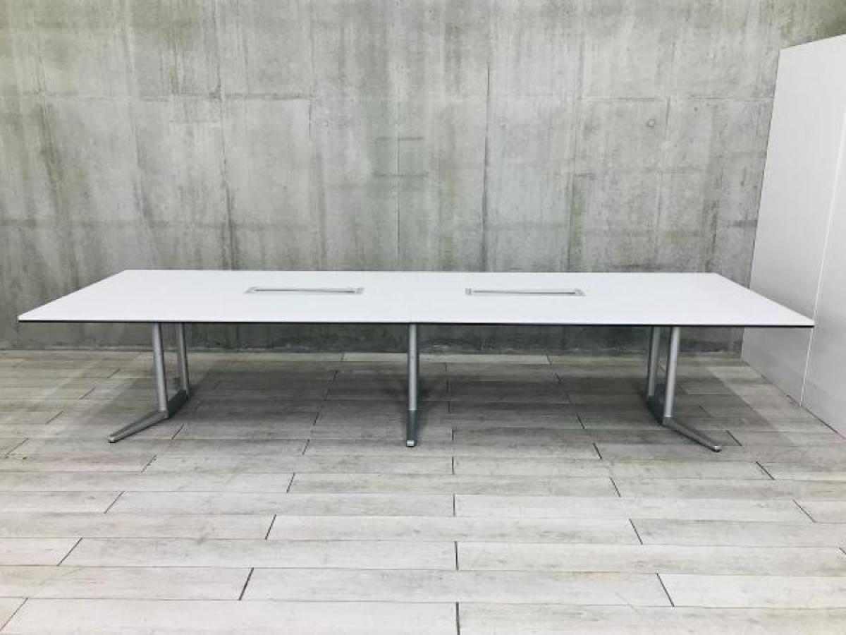 【ワンランク上のカンファレンス空間を演出!】■オカムラ ラティオシリーズ 会議用テーブル W3200mm(8~12名用) 配線ボックス付 ホワイト 【Okamura RATIOⅡ】