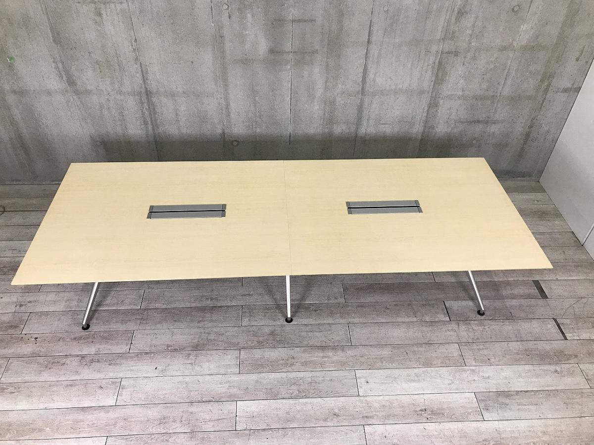 【幅3600㎜・洗練された上質なデザインの大型テーブル!】■イトーキ(ITOKI) DDシリーズ 会議用テーブル ミーテイングテーブル W3600×D1200㎜ ■配線口あり ■木目調ナチュラル天板 ※2枚天板のため搬入もしやすい!【IB】- 茨城南店