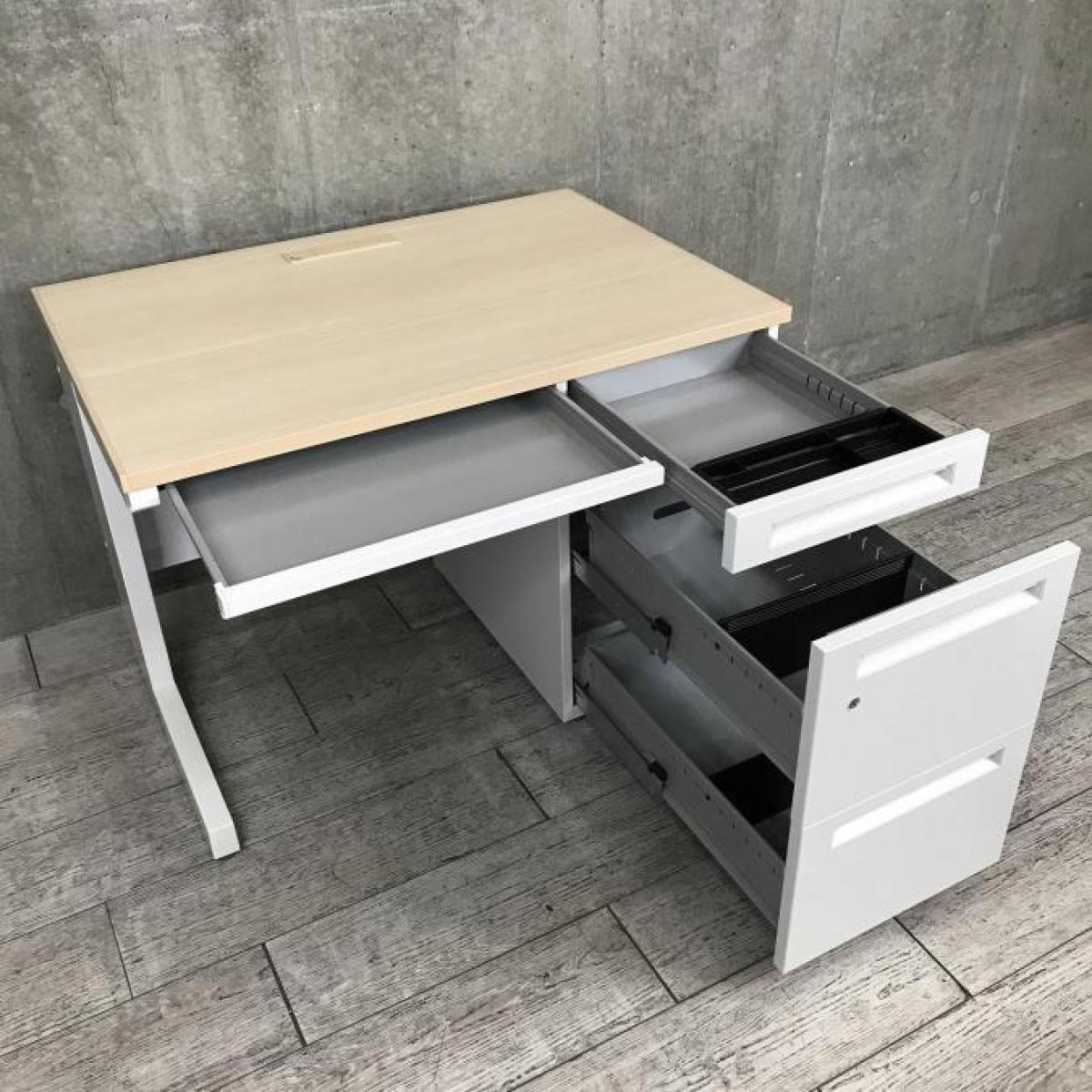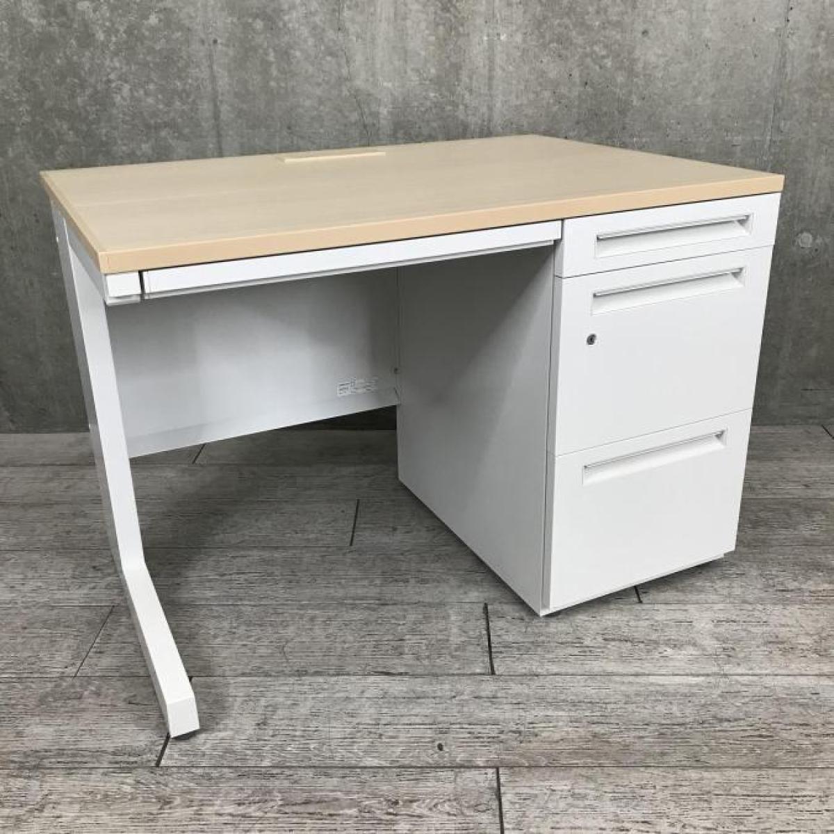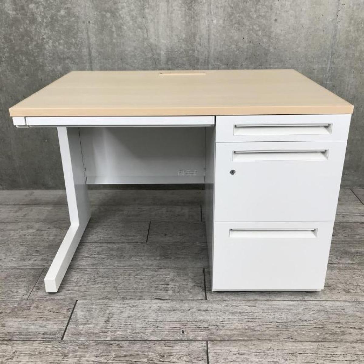 【幅1000㎜のコンパクトサイズ!人気の木目調天板!】■ウチダ(UCHIDA)製 スカエナシリーズ 片袖机 幅1000mm ■配線Sタイプ ■引き出し付き ■天板:ナチュラル木目調 本体:ホワイト ■シリンダー錠
