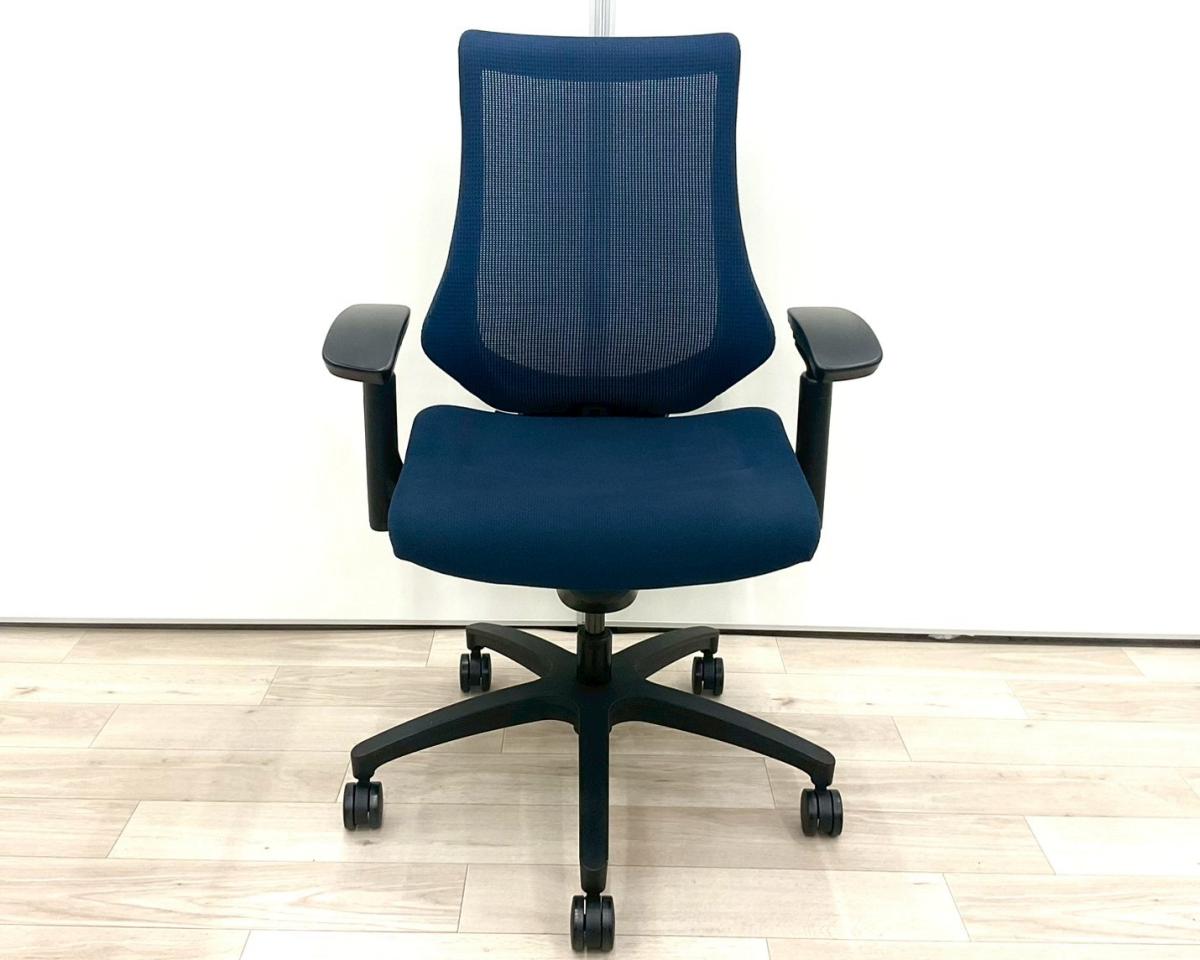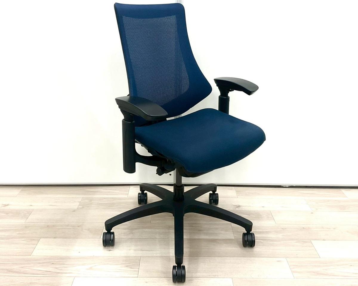 【姿勢の変化にフレキシブルに対応!スタイリッシュで座り心地も抜群な高機能チェア!】■イトーキ(ITOKI)製 エフ(f)チェア 肘付き ハイバック 背面メッシュ ■可動肘 ■ネイビーブルー ×ブラックシェル