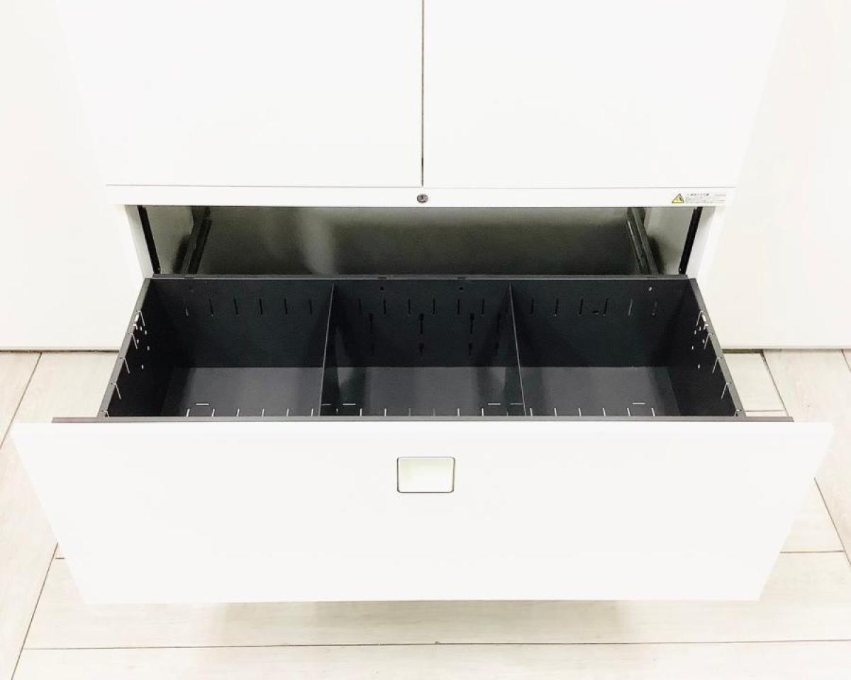 - 一部不具合ありそ引出の開閉不可、施錠不可、棚板無しといったの書庫の本来の効用を果たすための機能以外の一部が使用不可(例、扉、引出の開閉がしづらいなどがある。 )