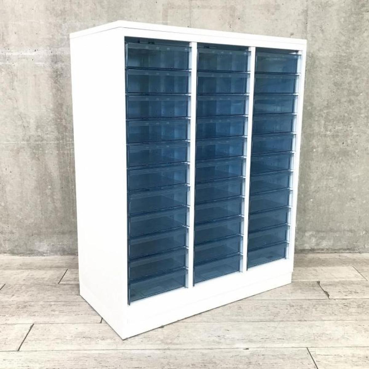 【書類・備品整理の必需品!】【珍しいクリトレが入荷!3列×深型9段タイプ!】■コクヨ(KOKUYO)製 エディア(EDIA)シリーズ クリスタルトレイ ローキャビネット H980㎜ ■3列×深型9段 ■ベース付 ■色:ホワイト