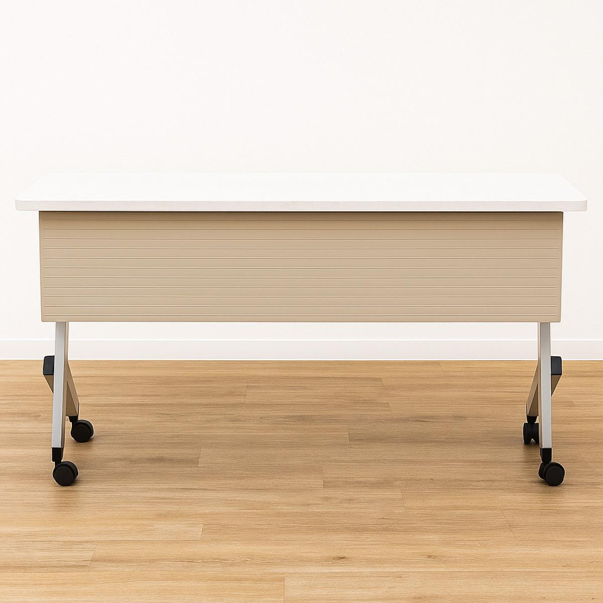 【折りたたみ収納が秀逸!スタイリッシュなデザインで高品質!】■ウチダ(UCHIDA)製 プラッテ(PLATTE)シリーズ サイドスタックテーブル W1500×D450㎜ ■キャスター付 ■ホワイト