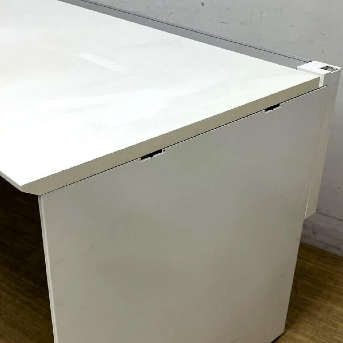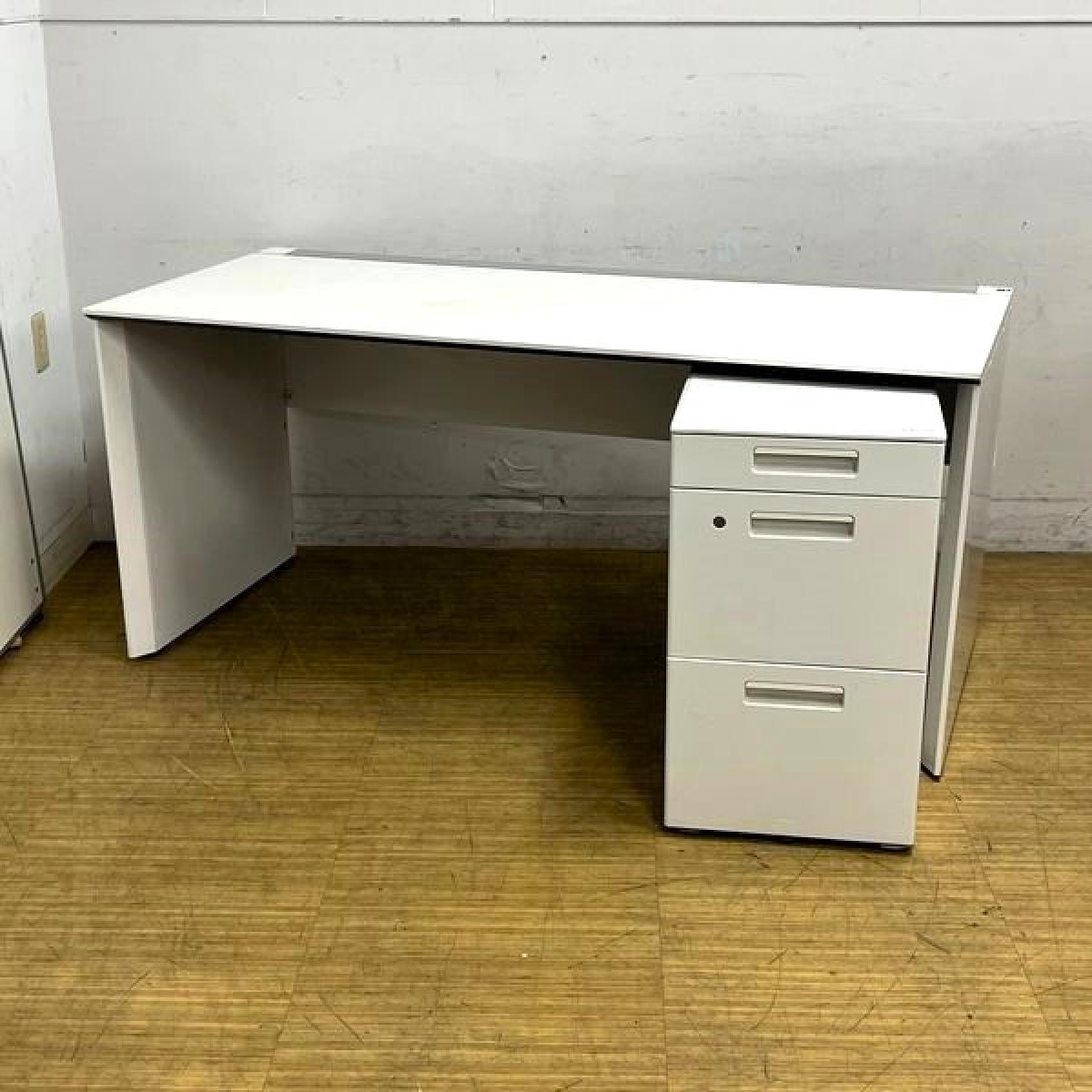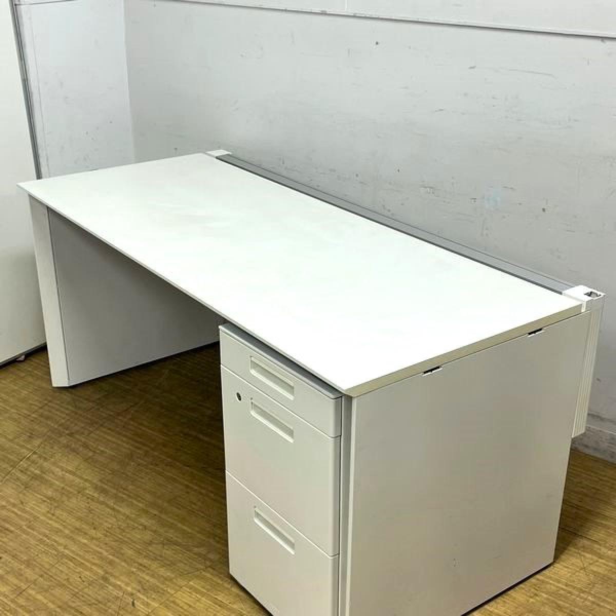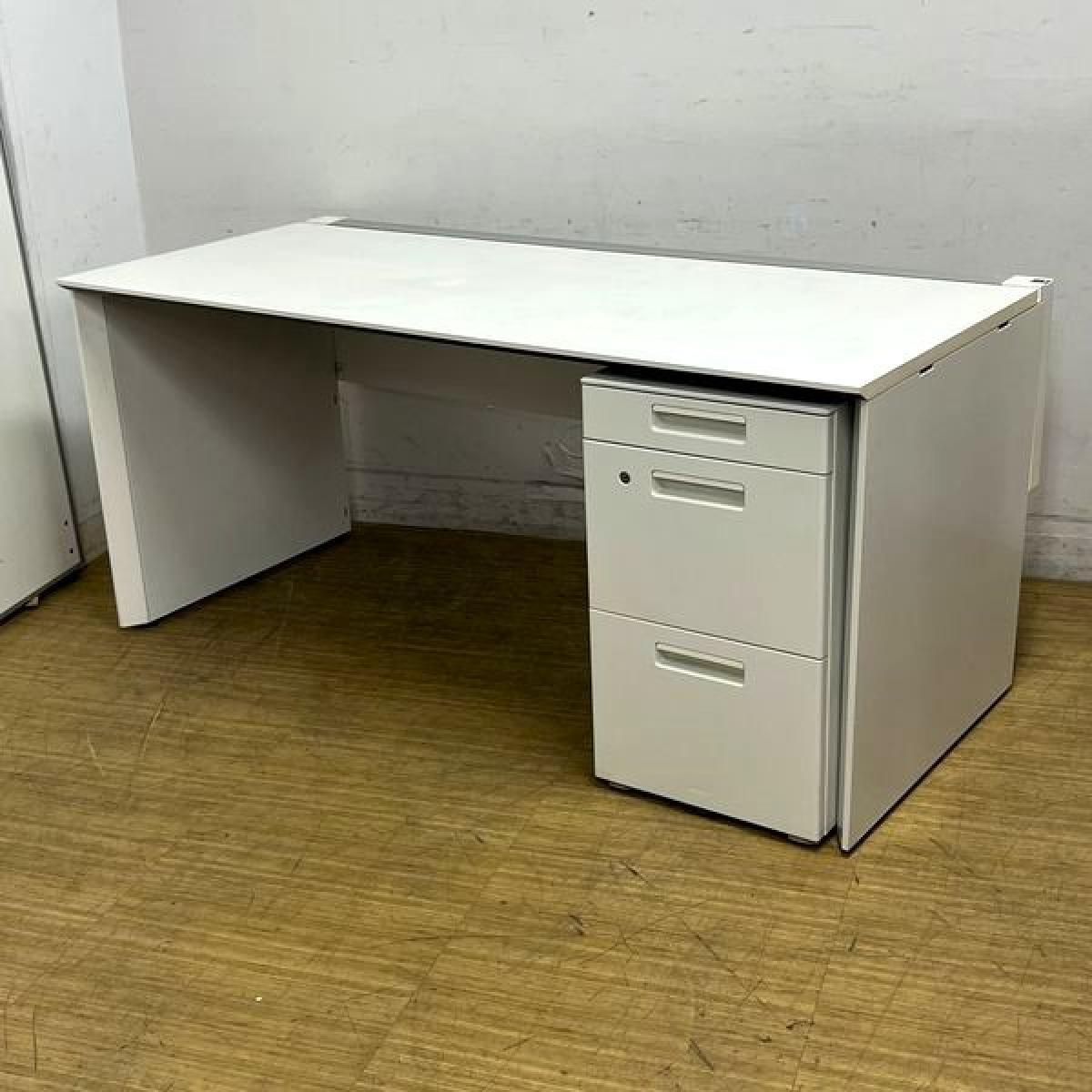 【在庫入替セール】片袖机(平机・片面フリーアドレスデスク+3段ワゴン) コクヨ ワークヴィスタ ホワイト 広々のW1600サイズ 足もとを隠すパネル脚 ワゴンはカギ1本付属- 名古屋千種店