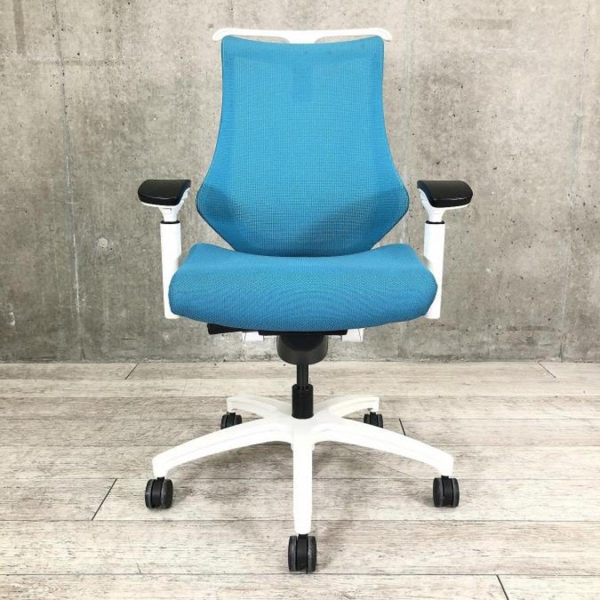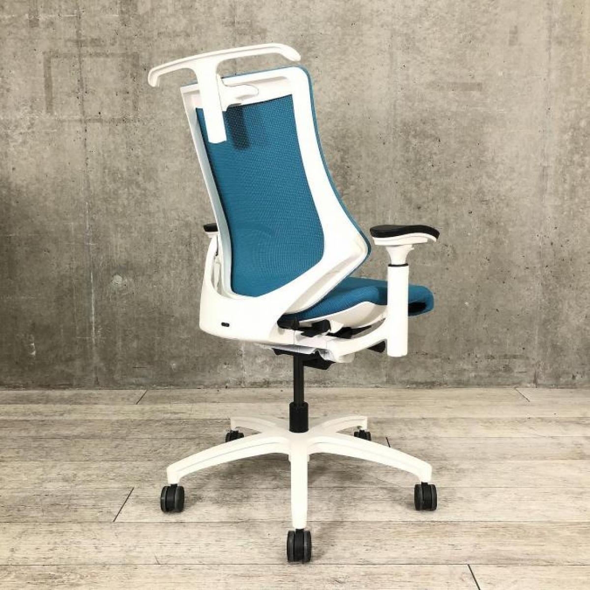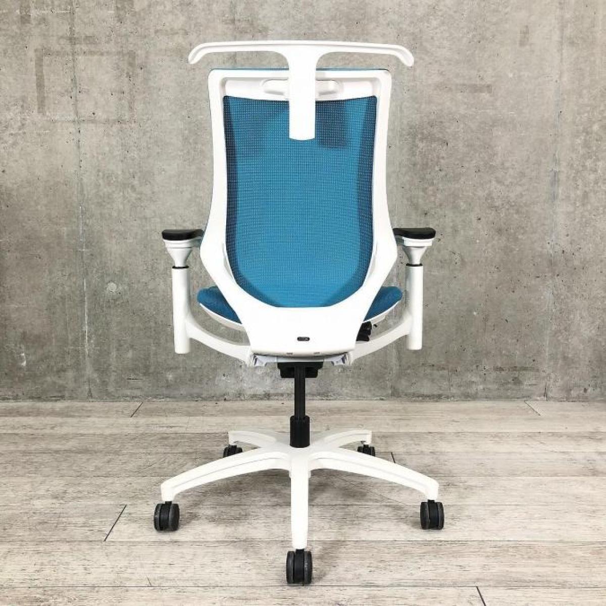 姿勢の変化にフレキシブルに対応!スタイリッシュで座り心地も抜群な大人気の高機能チェアが入荷! ■イトーキ(ITOKI) エフチェア(f)/ストロングブルー×ホワイトフレームメッシュ 背面メッシュ コートハンガー付・可動肘付 旧タイプ
