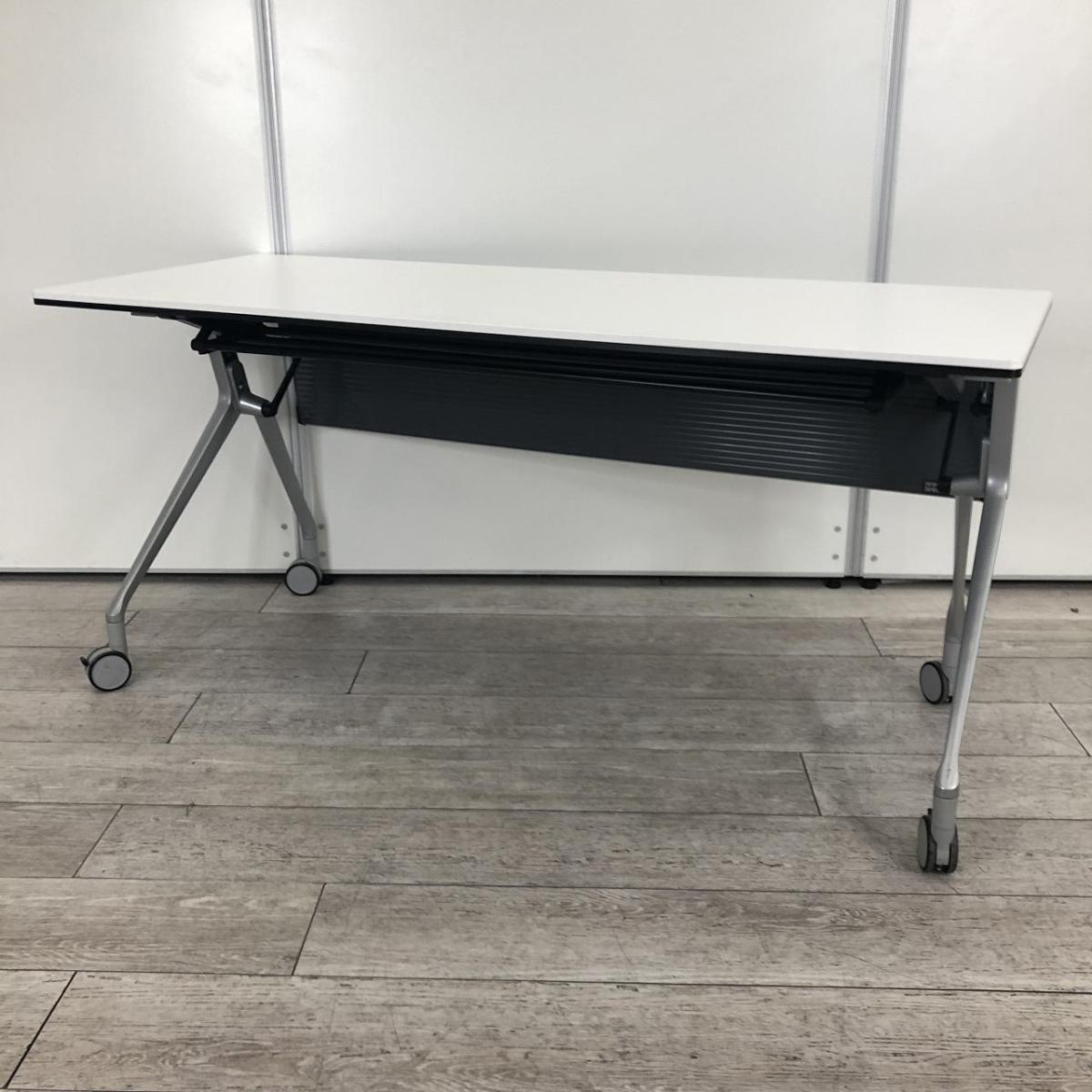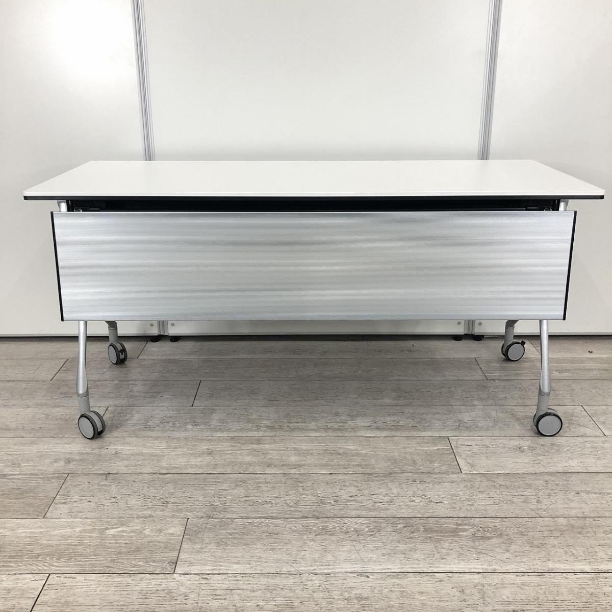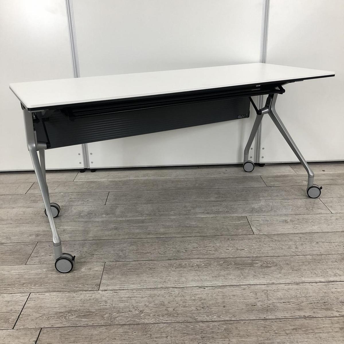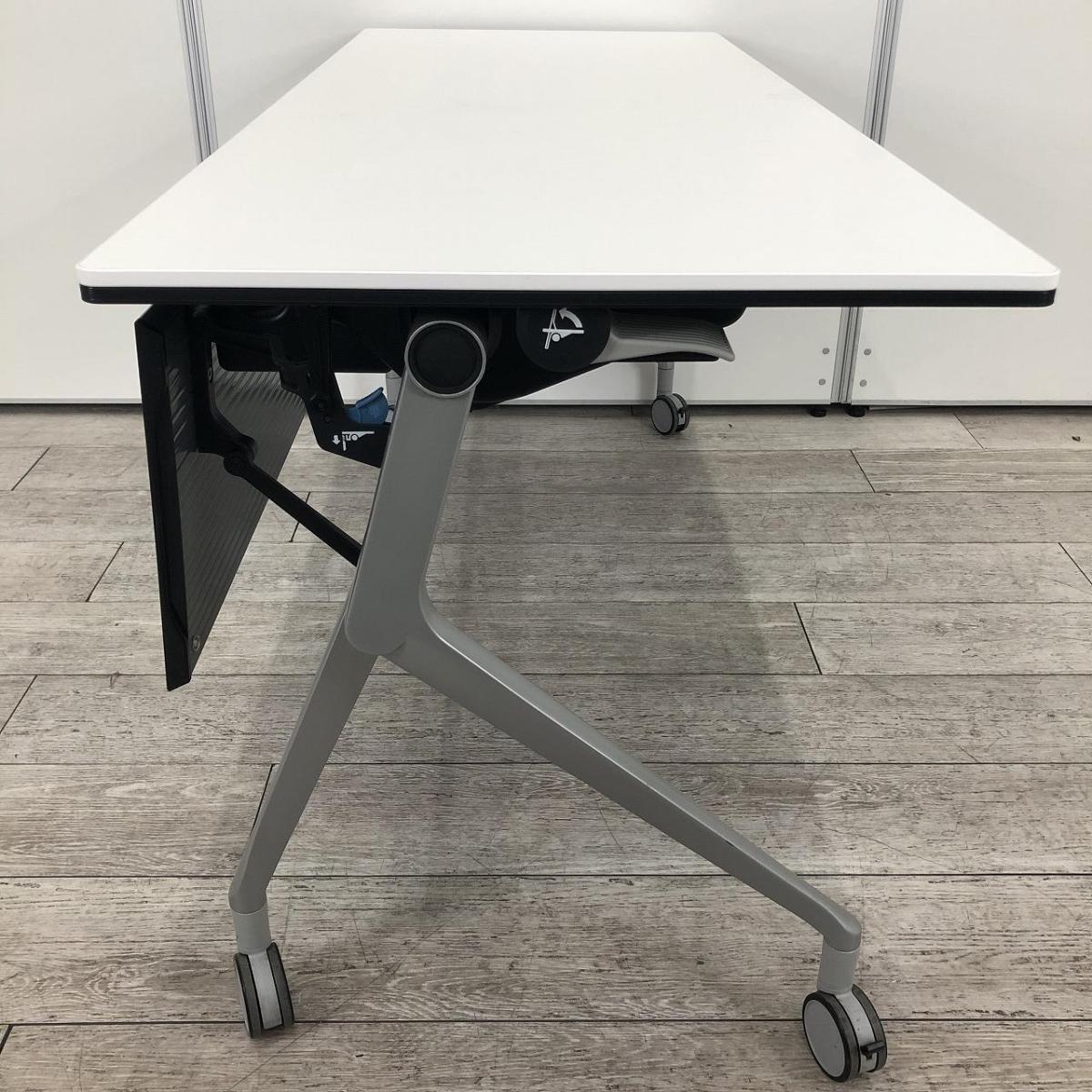 【折りたたみ収納が秀逸!スタイリッシュなデザインで高品質!】■オカムラ(okamura)製 インターアクトNTシリーズ(INTER ACTNT) サイドスタックテーブル W1500×D600×H720mm ■キャスター付 ■ホワイト- 千葉店