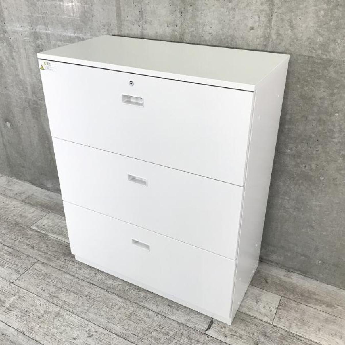 ■イトーキ(ITOKI)製 シンライン (THIN LINE) 3段ラテラル書庫 ローキャビネット ■ホワイト ■シリンダー錠