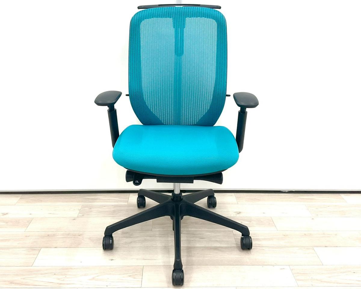 《年末在庫入替セール/㉕/8》オカムラ製の人気オフィスチェア【シルフィーメッシュ/可動肘/ヘッドレスト付き/ブルーグリーン】が値下されました!