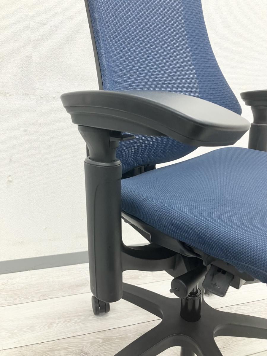 【姿勢の変化にフレキシブルに対応!スタイリッシュで座り心地も抜群な高機能チェア!】■イトーキ(ITOKI)製 エフ(f)チェア 肘付き ハイバック 背面メッシュ ■可動肘 ■ネイビーブルー ×ブラックシェル