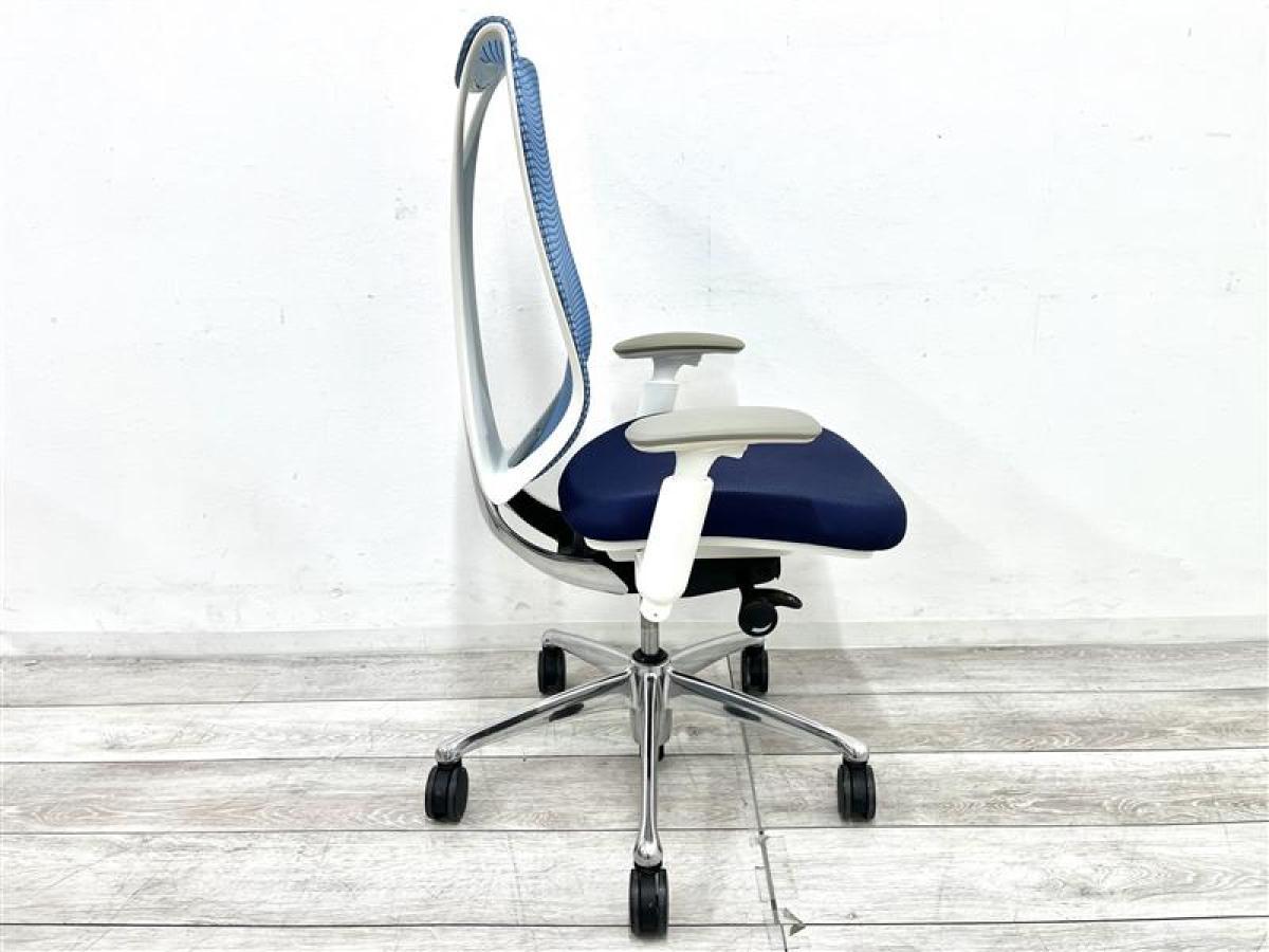 【在庫セール品】【定価約15万円】【前傾チルト付!流れるような美しいフォルムの最高級メッシュチェア!】■オカムラ(okamura)製 Sabrina(サブリナ) ハイバック 肘付き ■可動肘 ■背面メッシュ:アクアブルー 座面:ブルー ホワイトフレーム- 仙台店