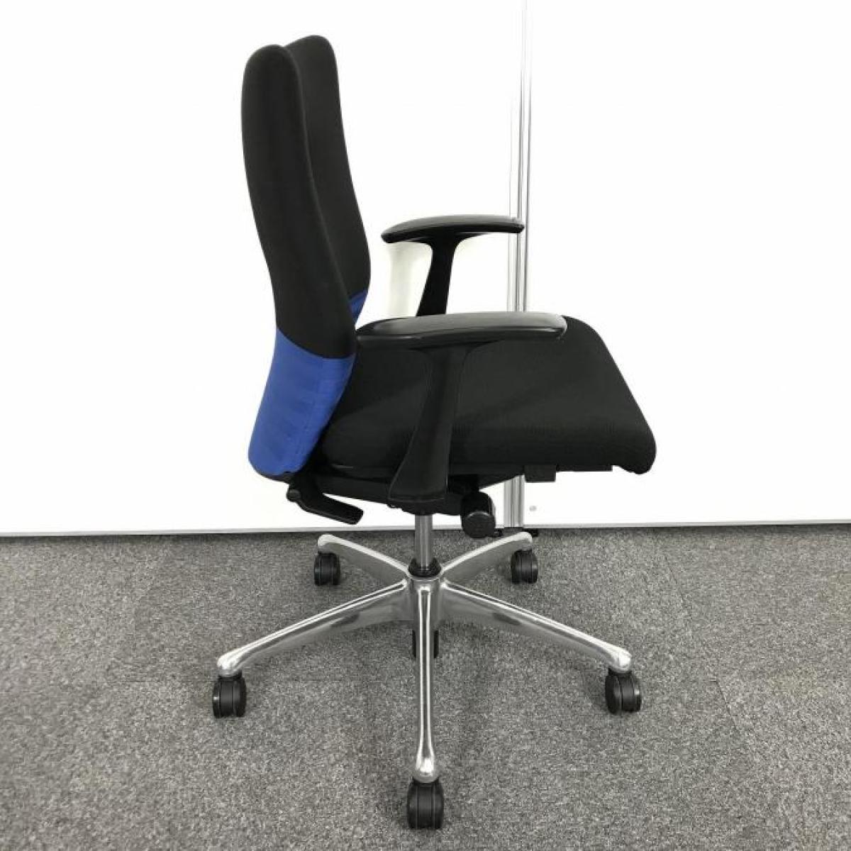 【人間工学に基づいた快適な座り心地! 背あてのしなやかな曲線が背中にフィット!】■オカムラ製 フィーゴチェア (feego) 肘付ミドルバック シームレスタイプ ■肘付 ■ブラック×ブルー ■固定肘サーキュラーバリューCO2削減量の算出について