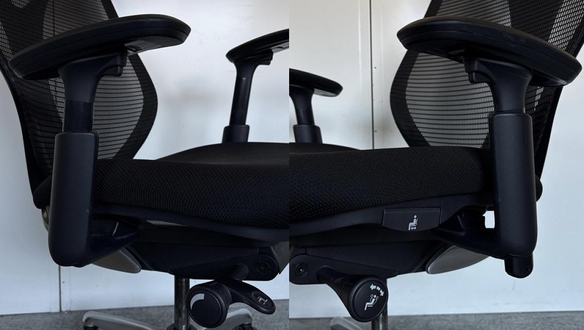 - 肘パッド部の上下(1D)、角度(2D)、前後(3D)、左右(4D)の調整が可能。可動幅は、上下100mm、内側20度、外側10度、前後40mm、左右片側25mmです。