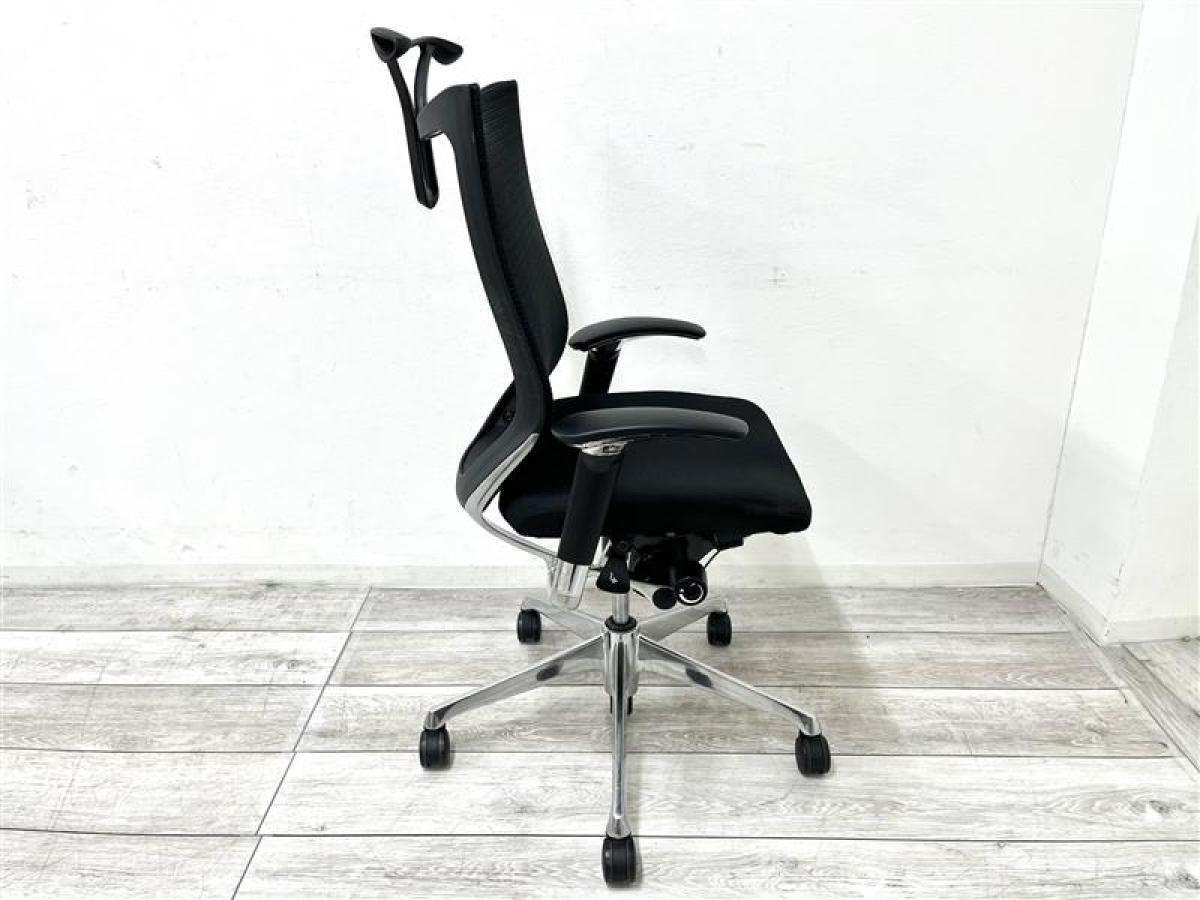 【限定1脚】人気のヘッドレスト付!数量限定入荷!【良い椅子は腰を守る投資です!】■オカムラ バロンチェア 可動肘付 ブラック ヘッドレスト付 座面メッシュ シルバーフレーム ハンガー付 ■上質な座り心地を体感できます!