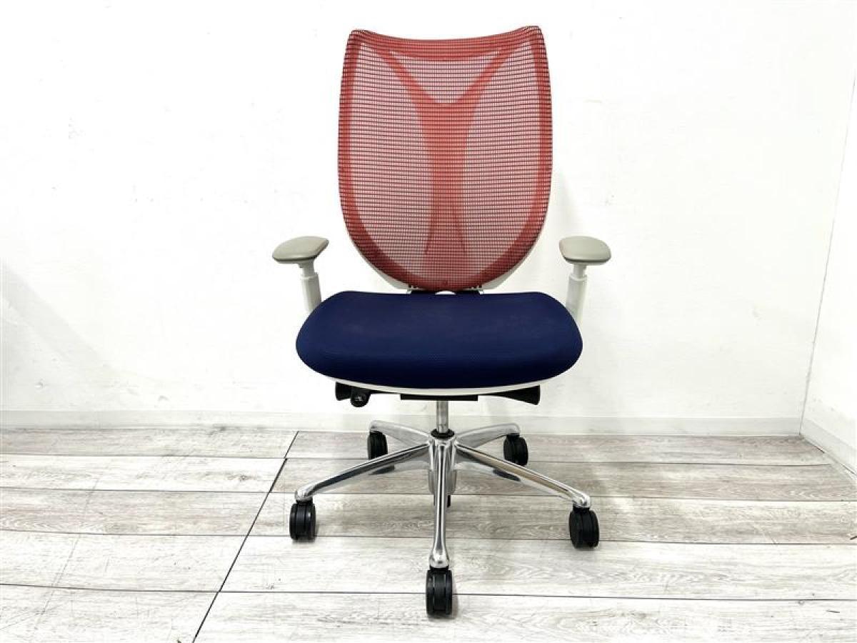 【来店限定キャンペーン】【在庫入替セール品】【人間工学から生まれた最先端のワーキングチェア!】■オカムラ サブリナチェア 可動肘付 背:レッド / 座:ダークブルー ■流れるような美しいフォルム!姿勢に心地よくフィット!【弊社使用欄:A00994649】【SH】