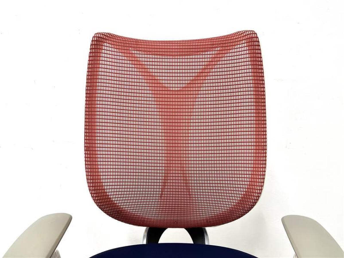 【在庫入替セール品】☆流れるような美しいフォルムで作業姿勢に心地よくフィット! ■オカムラ サブリナチェア 可動肘付 背:レッド / 座:ダークブルー ■人間工学から生まれたワーキングチェア!【Okamura Sabrina】★A00994649