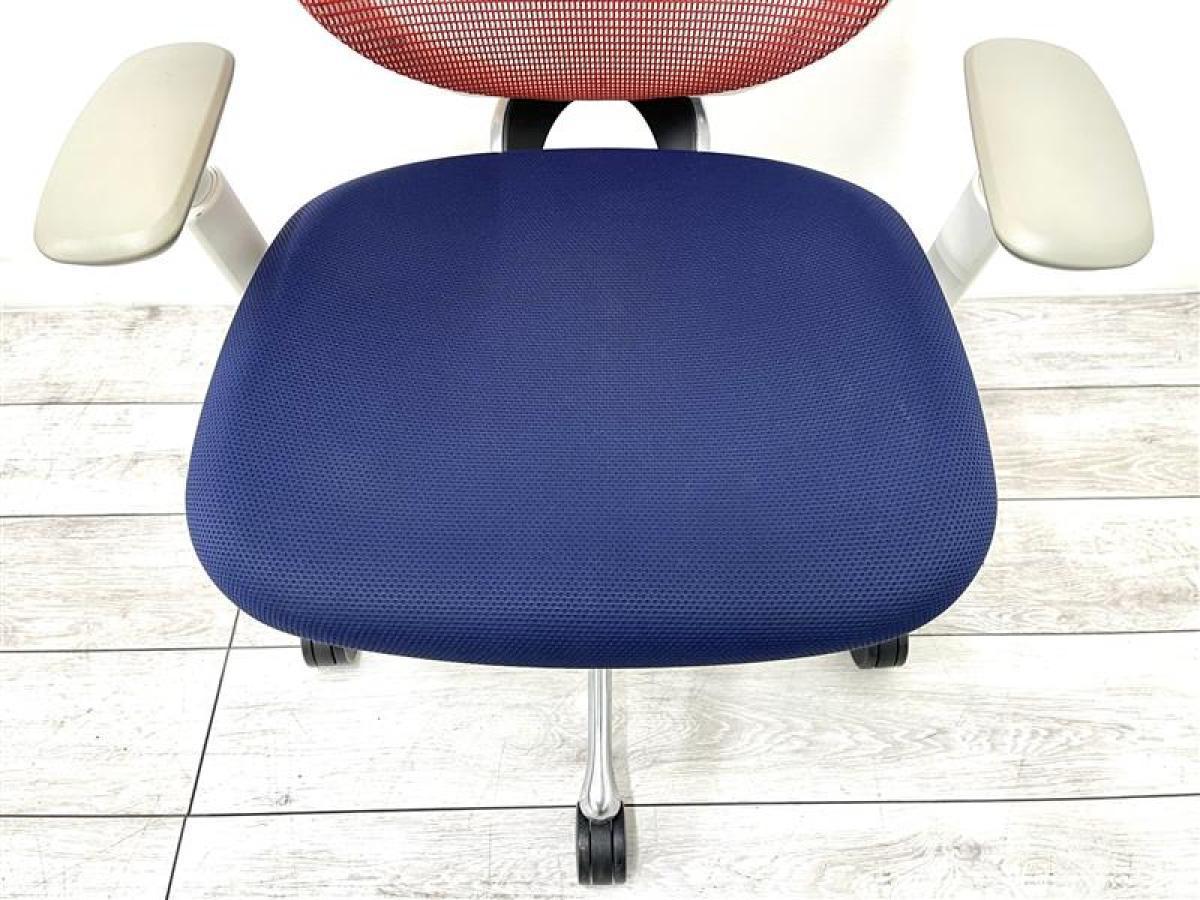 【来店限定キャンペーン】【定価約17万円】【クッション性抜群!長時間のデスクワークにおすすめ!】■オカムラ/サブリナ ■背もたれレッド/座面ブルー/フレームホワイトの珍しいトリコロールカラー!■可動肘 背もたれメッシュ■前傾チルト機能付き