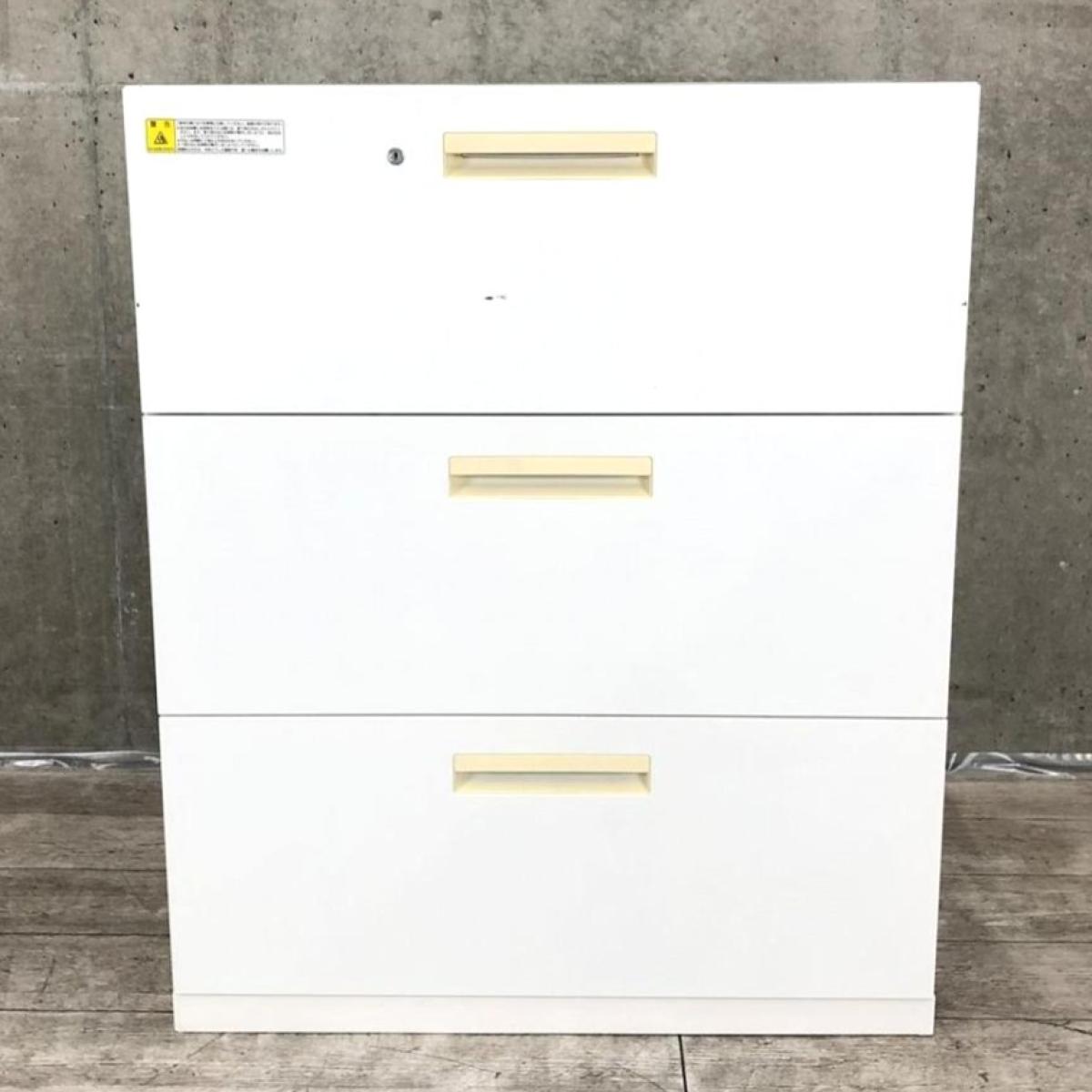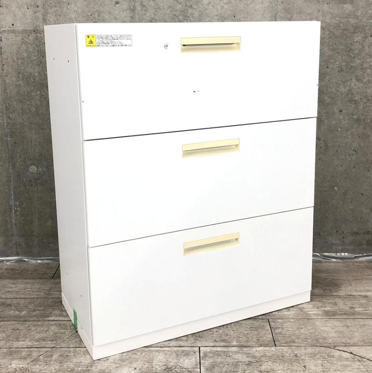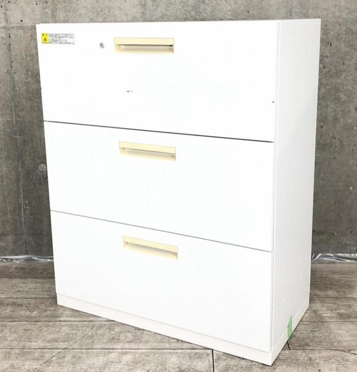 【ファイル収納に便利な引出し型キャビネット!】■ウチダ(UCHIDA) HSシリーズ 3段ラテラル書庫 ホワイト ※日焼け・キズありのためお安く!- 川崎店