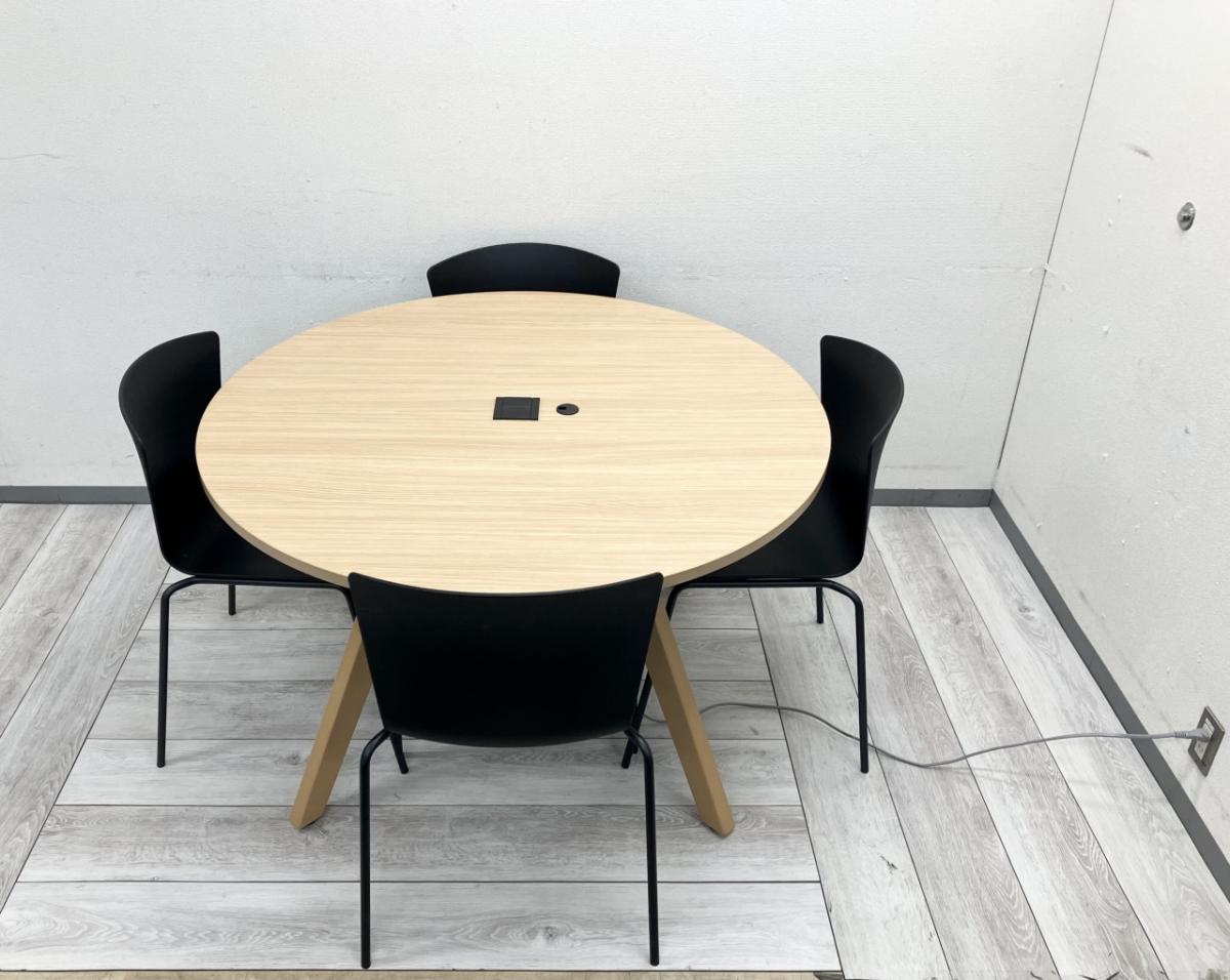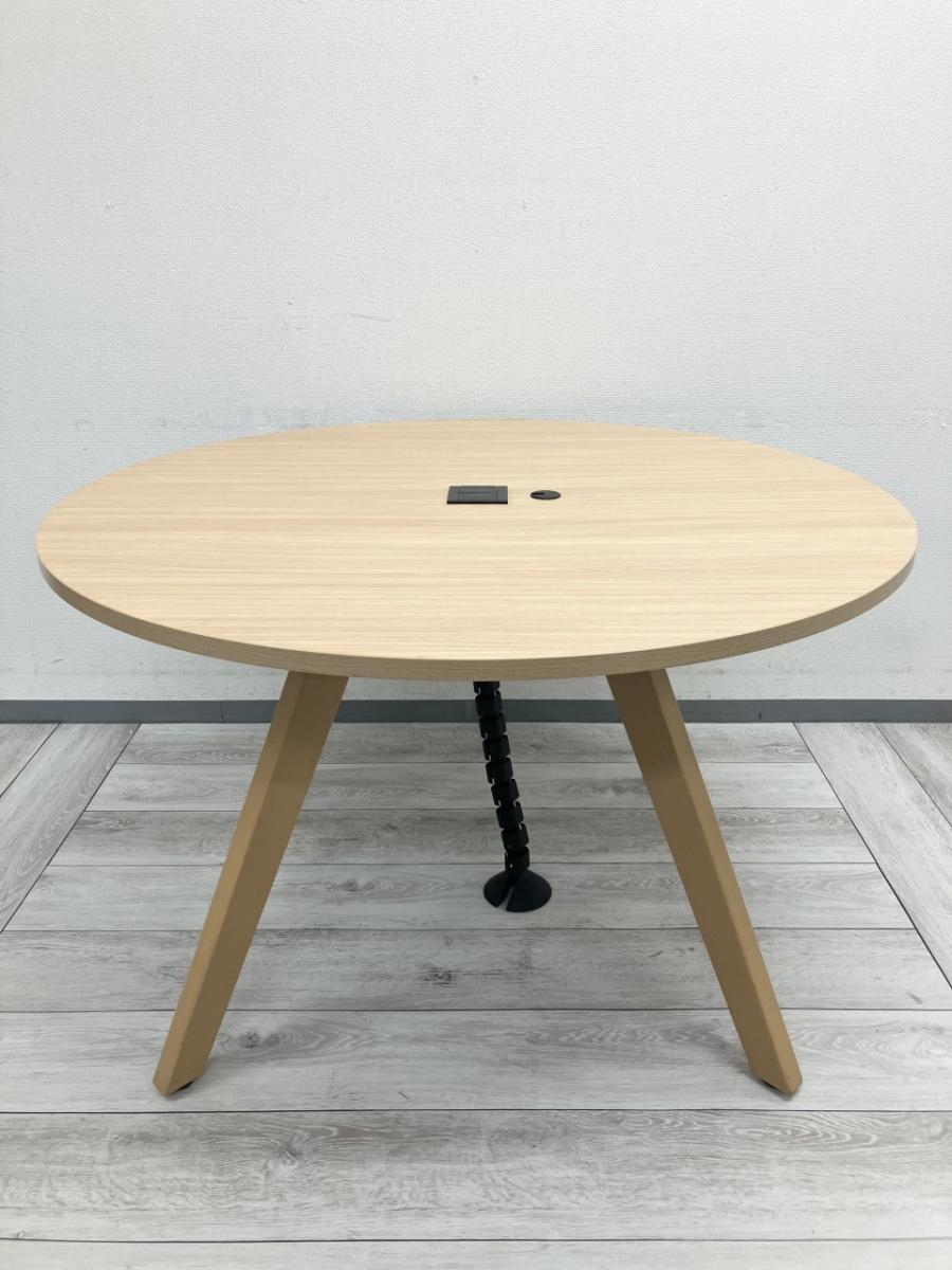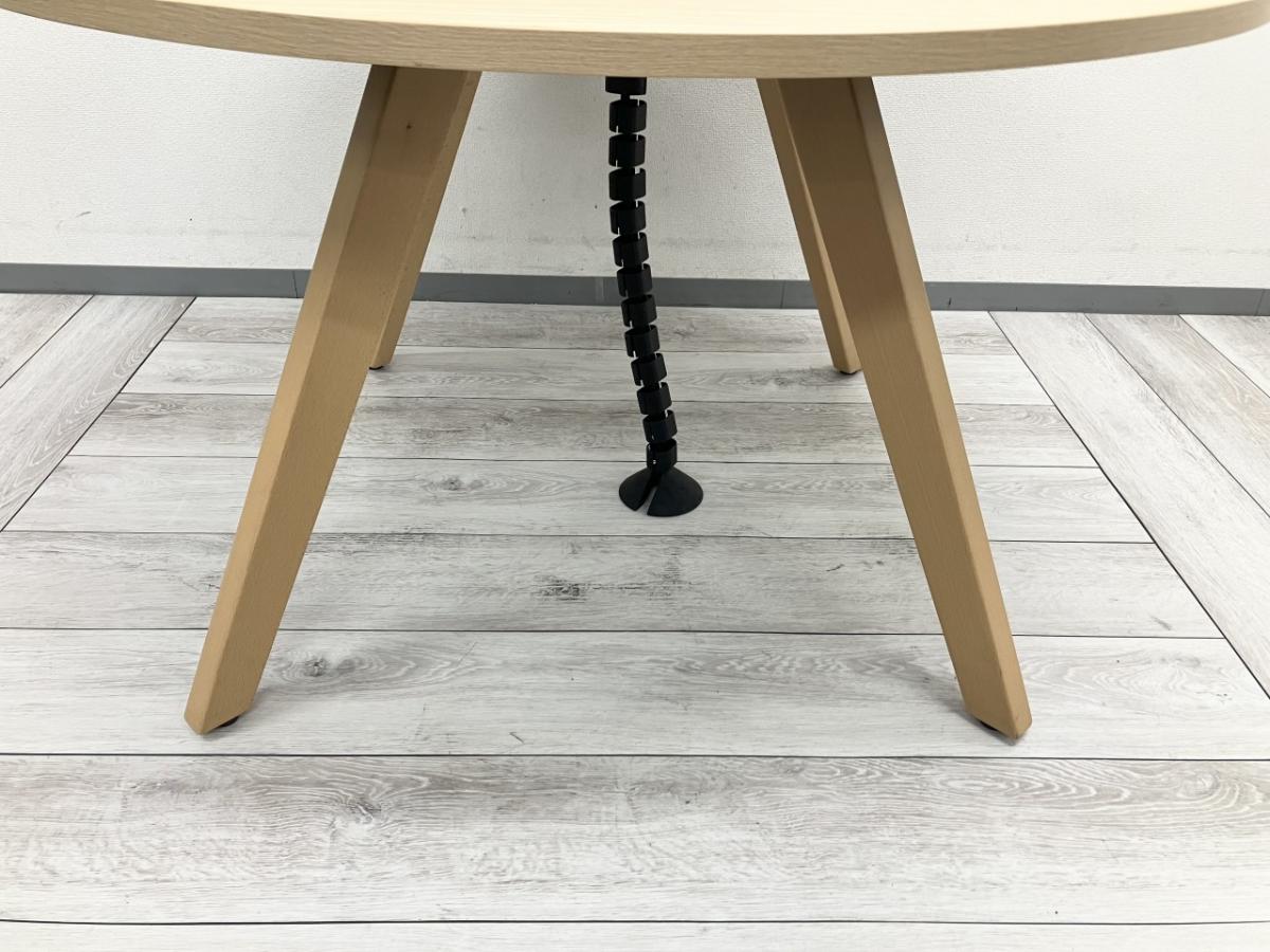 上品であたたかみのある木目天板と、すっきりとしたテーパード脚が印象的なコクヨの円形ミーティングテーブルです。