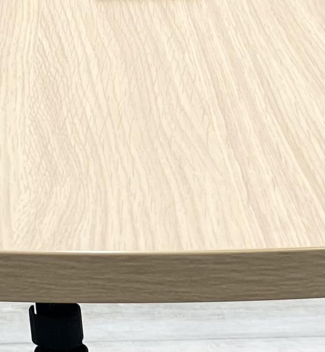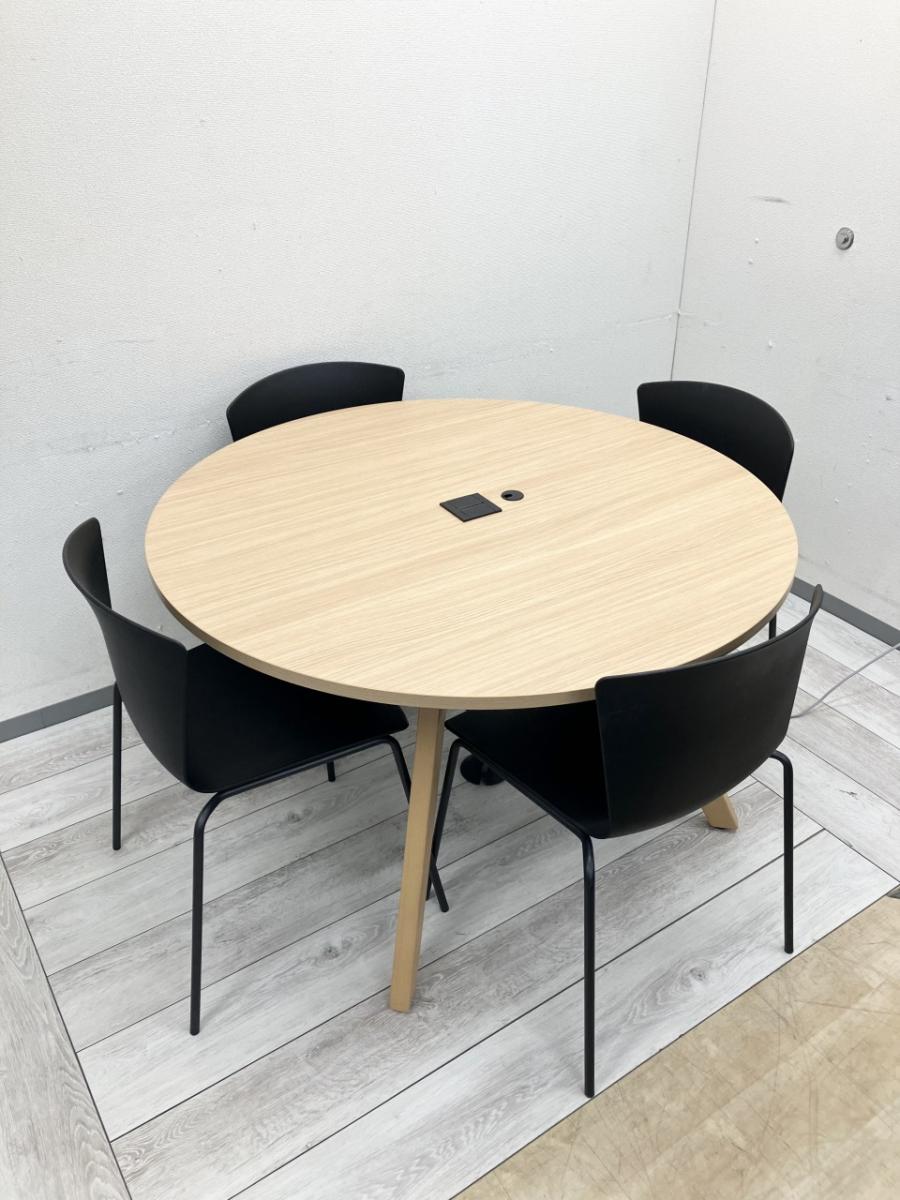 上品であたたかみのある木目天板と、すっきりとしたテーパード脚が印象的なコクヨの円形ミーティングテーブルです。