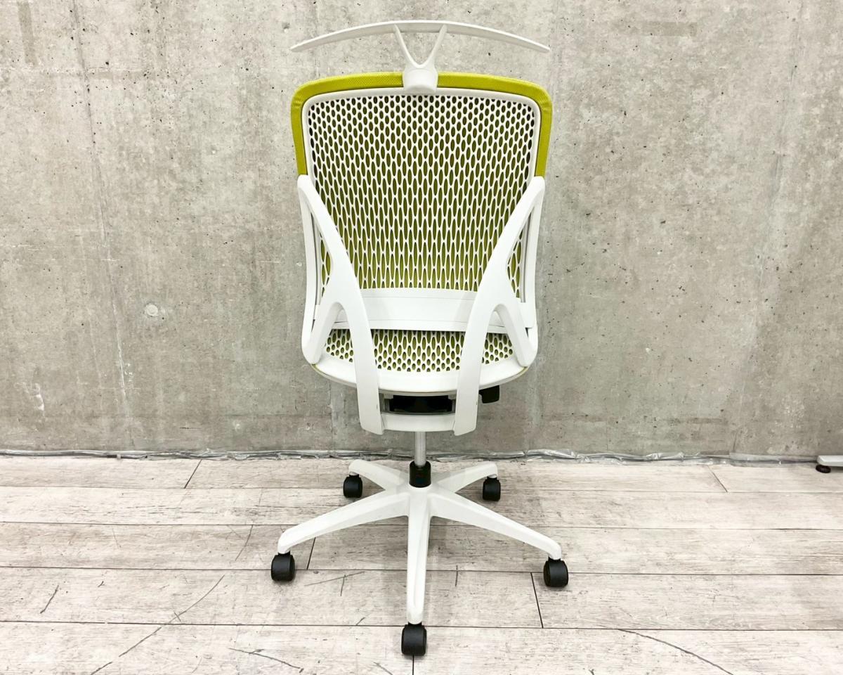 【在庫入替セール】【14脚大量入荷】【人間工学に基づいたS字曲線!理想的な座り心地を追求した大人気チェア!】■イナバ(Inaba) イエラチェア(yera) 肘無し ハイバック ■背面クッションタイプ ■ランバーサポート付 ■グリーン×ホワイトシェル ■ハンガー付【T10】